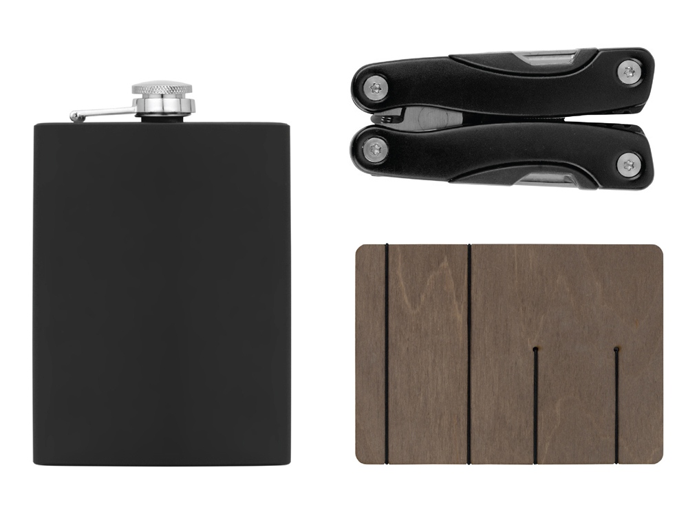 В набор входят мультиинструмент и фляжка, которые пригодятся как в городе, так и на природе.
