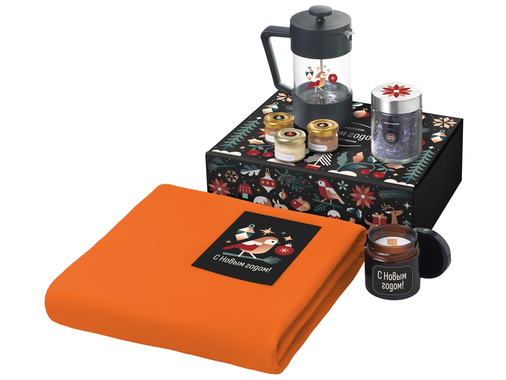 Подарочный набор «Re:Moments» с пледом, френчпрессом и медом