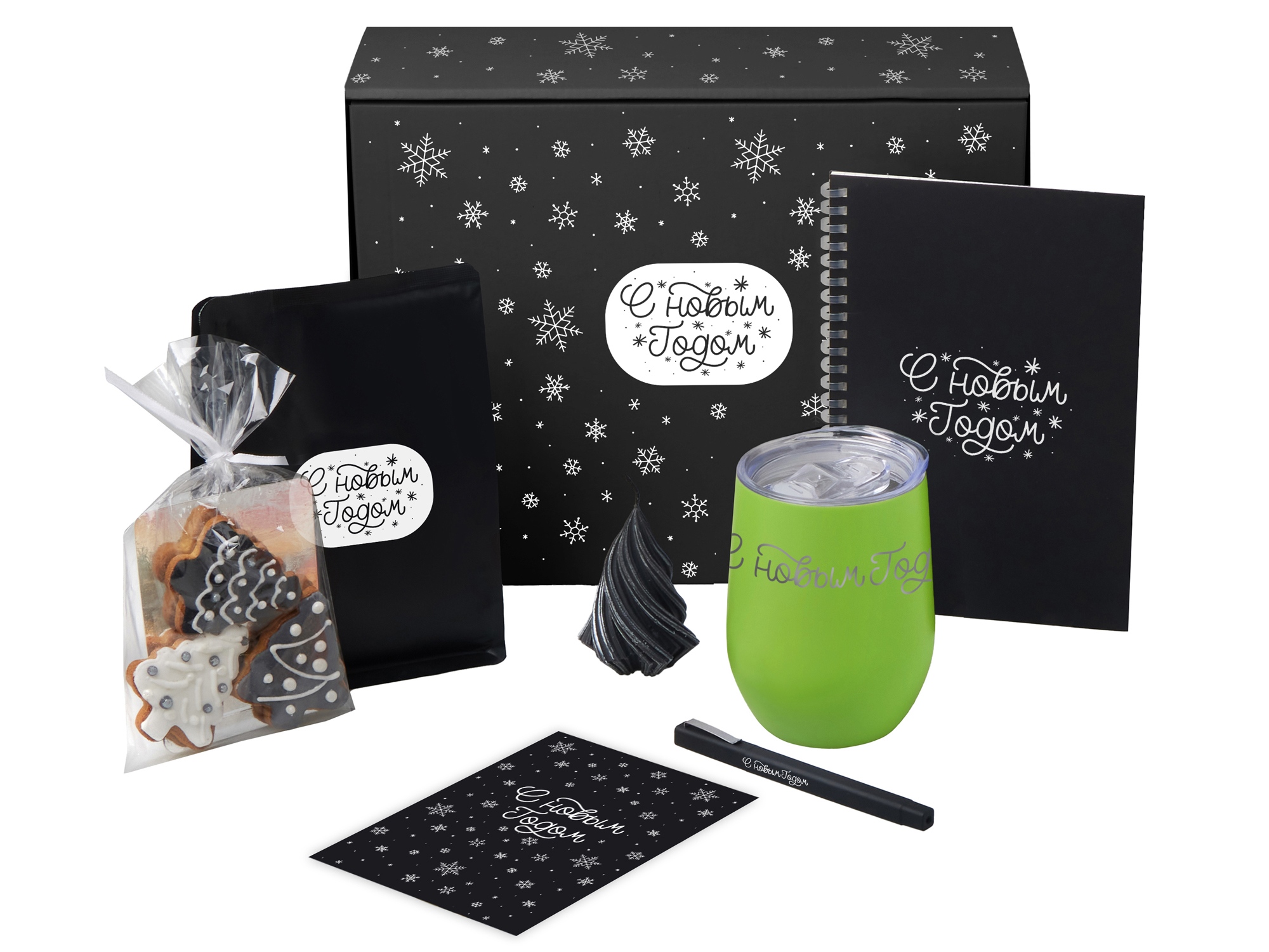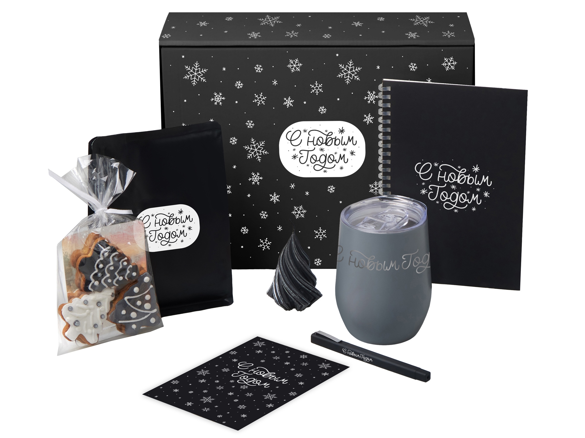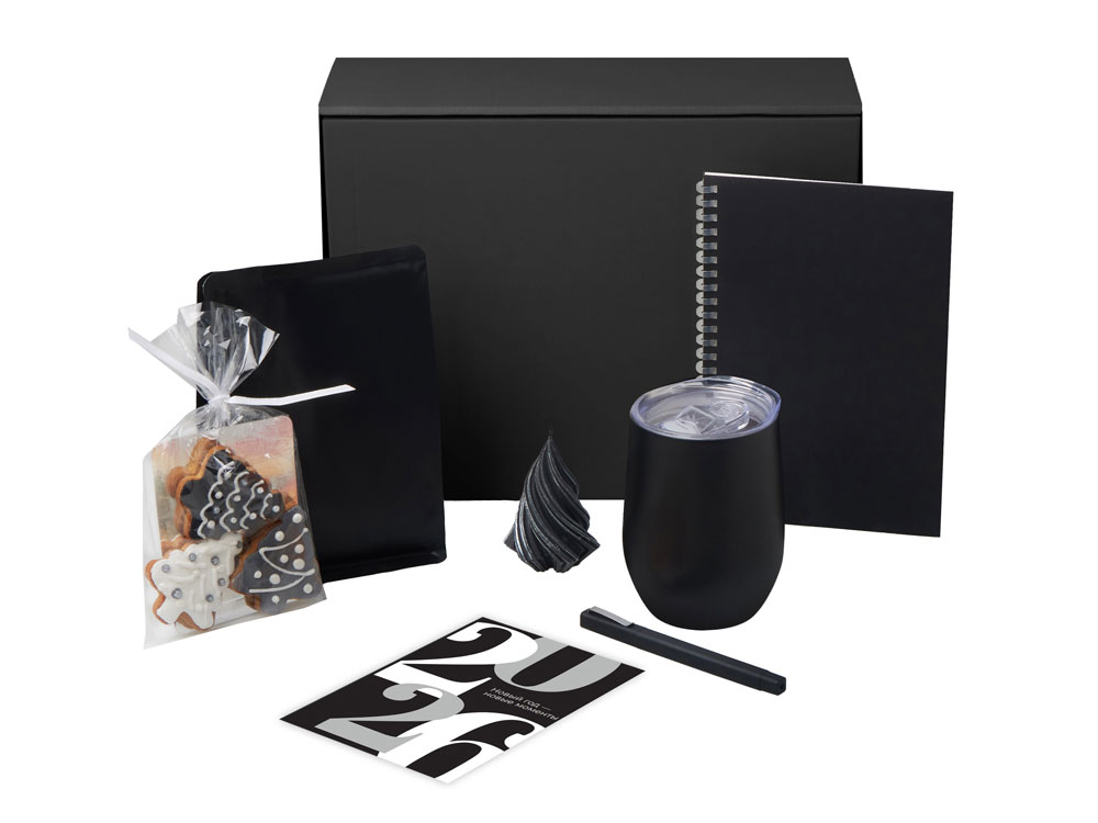 Набор «Re:Start» — о маленьких ритуалах, которые делают каждый день особенным. Налейте в термокружку любимый ароматный кофе, вдохните аромат и позвольте себе немного тишины. Остановитесь, подумайте, что вы чувствуете и чего хотите. Этот блокнот можно использовать как личный дневник, место для идей, или как рабочий блокнот в новом году — ведь начинать писать с чистого листа всегда особенно приятно. Имбирные пряники добавят сладкую нотку уюта и напомнят: даже в привычных днях можно находить тепло и вдохновение.