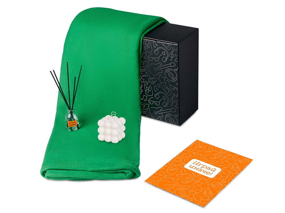 плед — флис, полиэстер, диффузор — стекло, свеча — 90% парафин очищенный, 10% соевого воска, фитиль хлопковый, миндаль — пластик, мешок — нетканый материал (спанбонд), коробка — картон