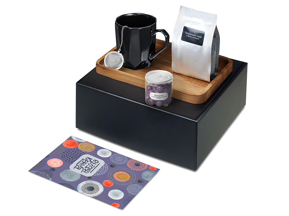Набор «Re:y. Hearth» — о возвращении к простым, тёплым моментам, когда всё вокруг дышит покоем. Заварите ароматный чай, налейте напиток в кружку и устройтесь поудобнее. Деревянный поднос поможет красиво сервировать стол, приготовить чайный уголок, а при желании — организовать хранение любимых мелочей. Вишня в черничной глазури добавляет насыщенную сладкую ноту и превращает паузу в маленькое удовольствие. Этот набор словно переносит к домашнему очагу — туда, где тепло, спокойно и по-настоящему хорошо.