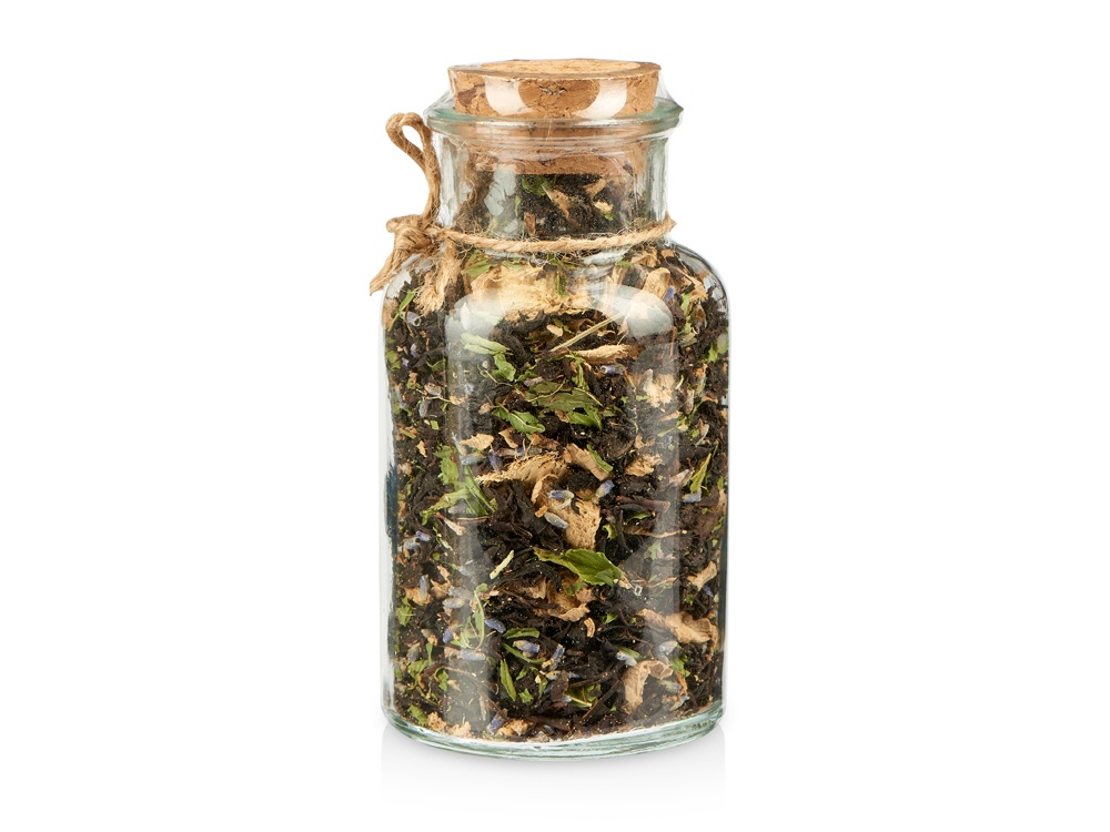 Состав: чай чёрный с имбирём и соком имбиря (чай чёрный байховый крупнолистовой, кусочки имбиря, сок имбиря), мята сушёная, лаванда.