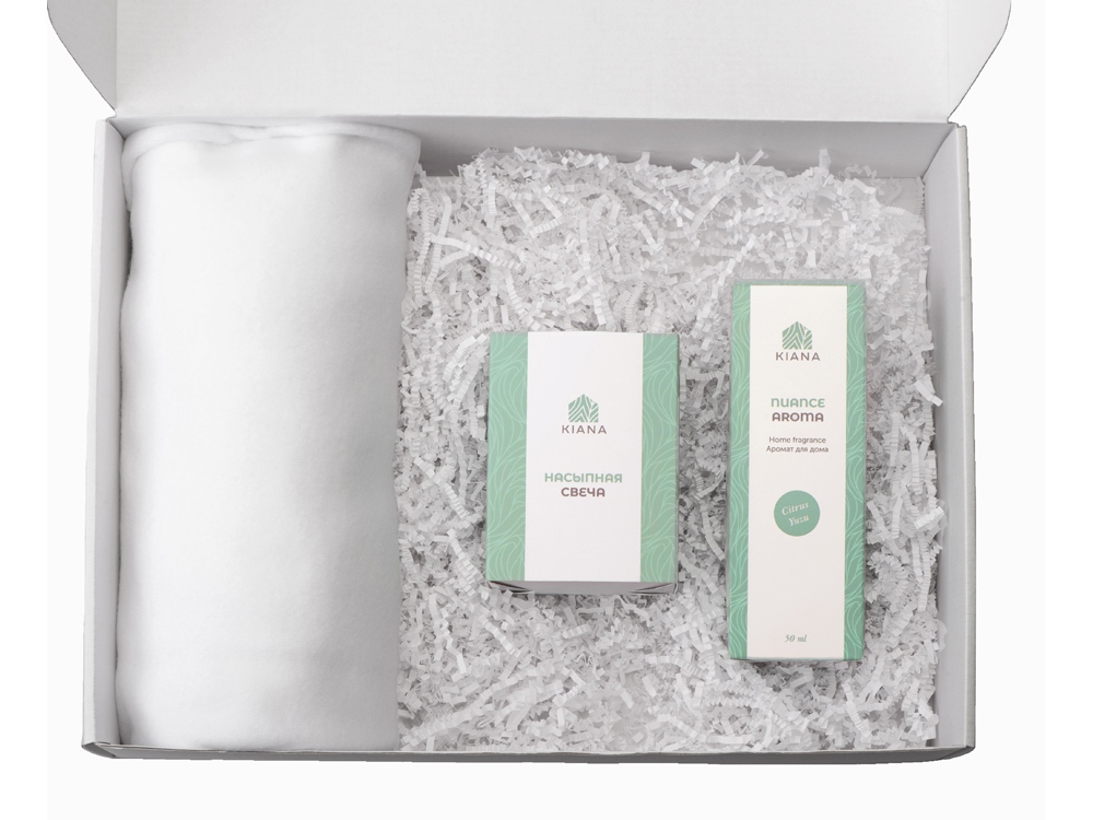 Набор состоит из флисового пледа, диффузора Kiana и насыпной свечи, которые вместе создадут настоящую магию, превратив обычный вечер в время релакса, отдыха и заботы о себе.