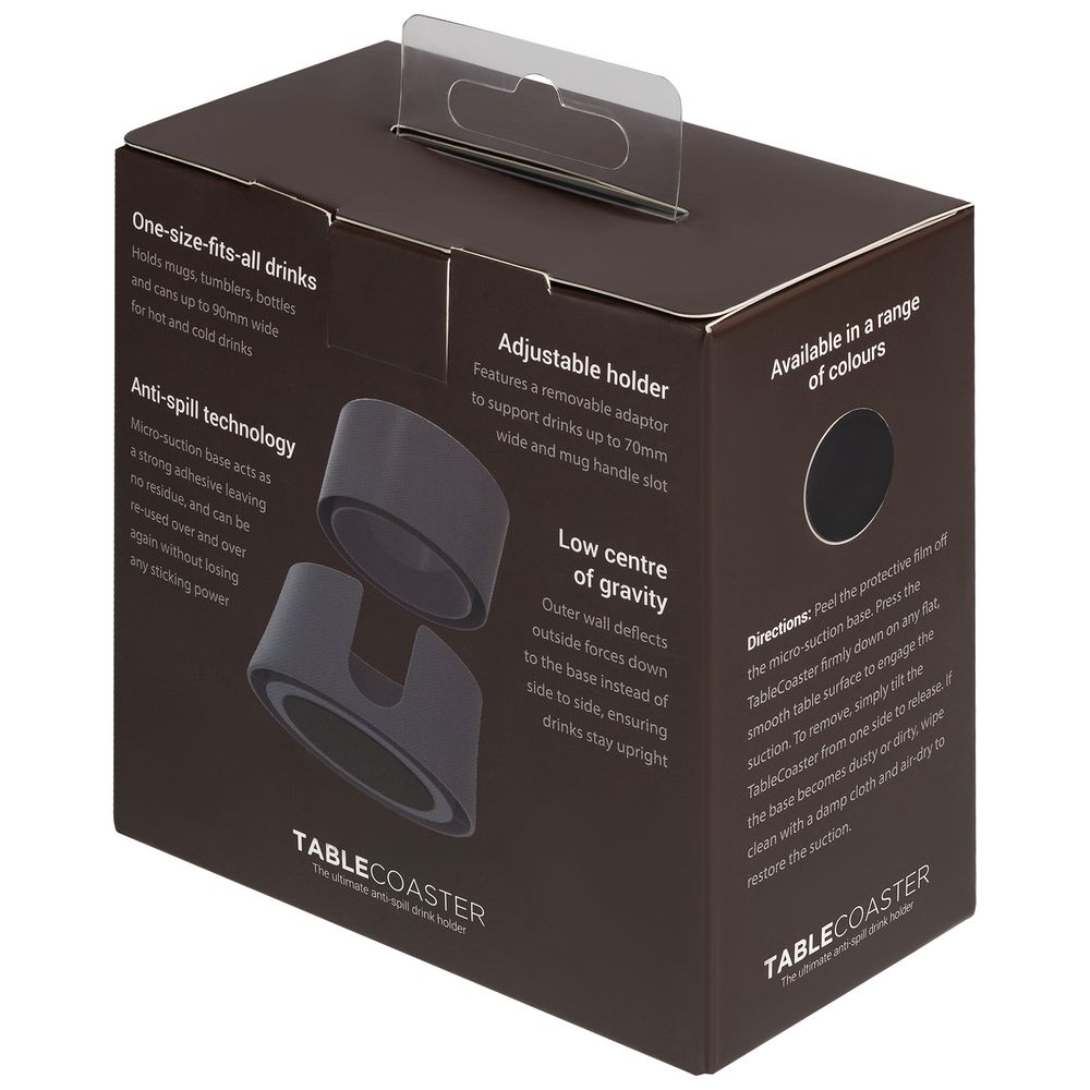 Подставку можно расположить на рабочем столе, прикроватной тумбочке или в машине — в любом месте Tabletop не даст чашке разбиться, а ее содержимому пролиться. Липкое основание конструкции представляет из себя поверхность из множества микроскопических присосок, поэтому уронить и даже сдвинуть подставку с места очень непросто — любимая чашка и клавиатура будут под надежной защитой. Благодаря внутренней вставке подходит для емкостей разного диаметра.