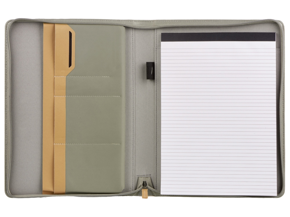 Обложка Harvey выполнена из переработанного пластика (RPET). Внутри папки 40 листов FSC бумаги плотностью 80г/м2, изготовленной с соблюдением экологических норм, на обложке — карман для визиток или бумаг.