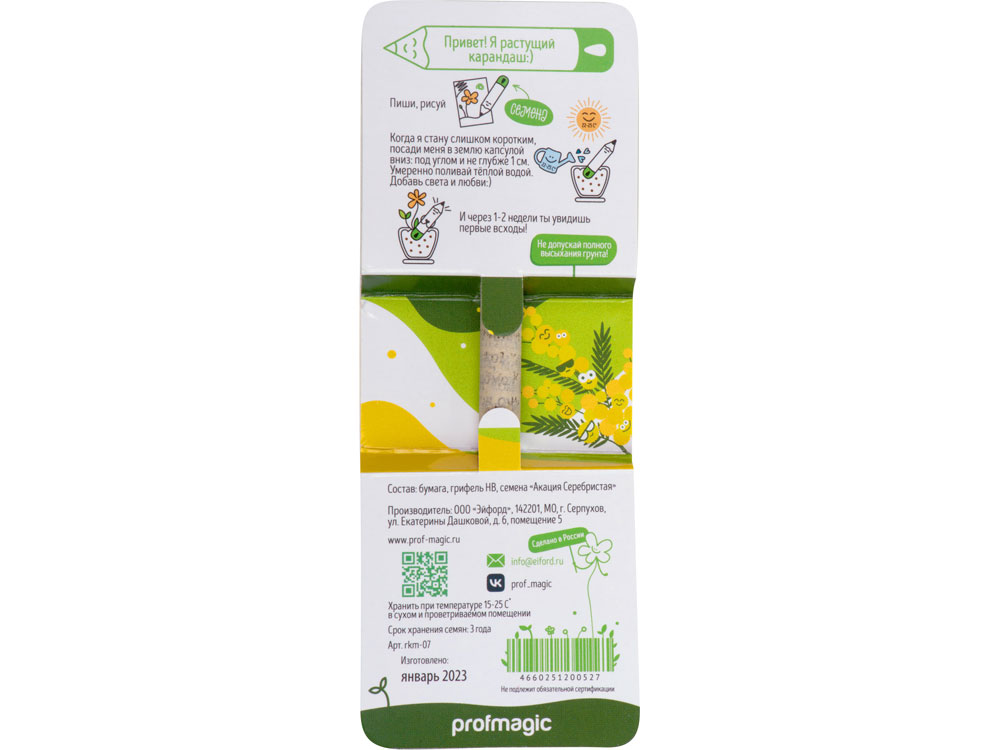 «Растущий карандаш» mini с семенами акации серебристой