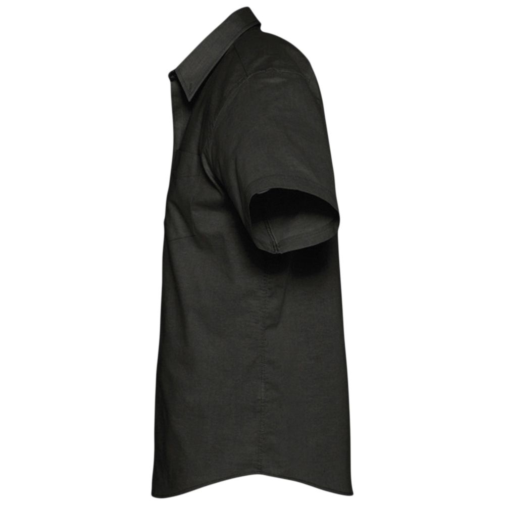 Рубашка из ткани «Оксфорд» с нагрудным карманом слева. На спинке две симметричные складки, воротник на двух пуговицах, регулируемые манжеты, планка с семью пуговицами в тон.