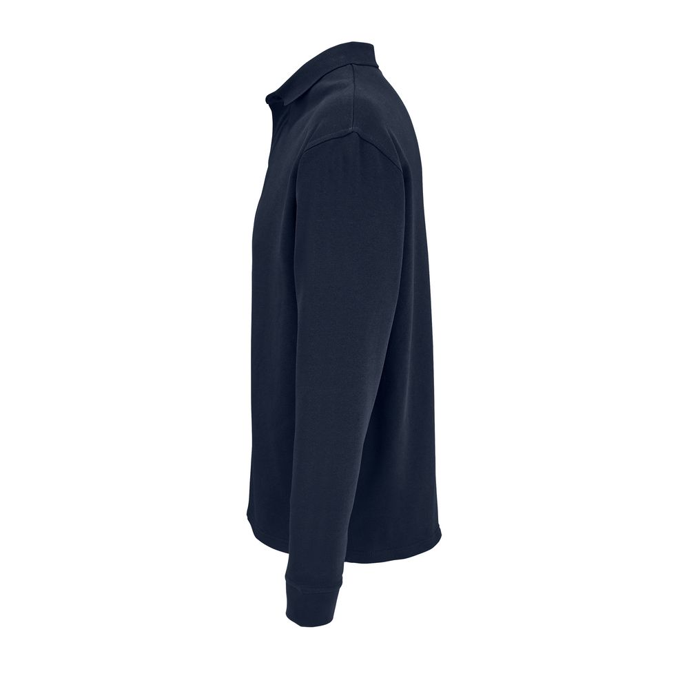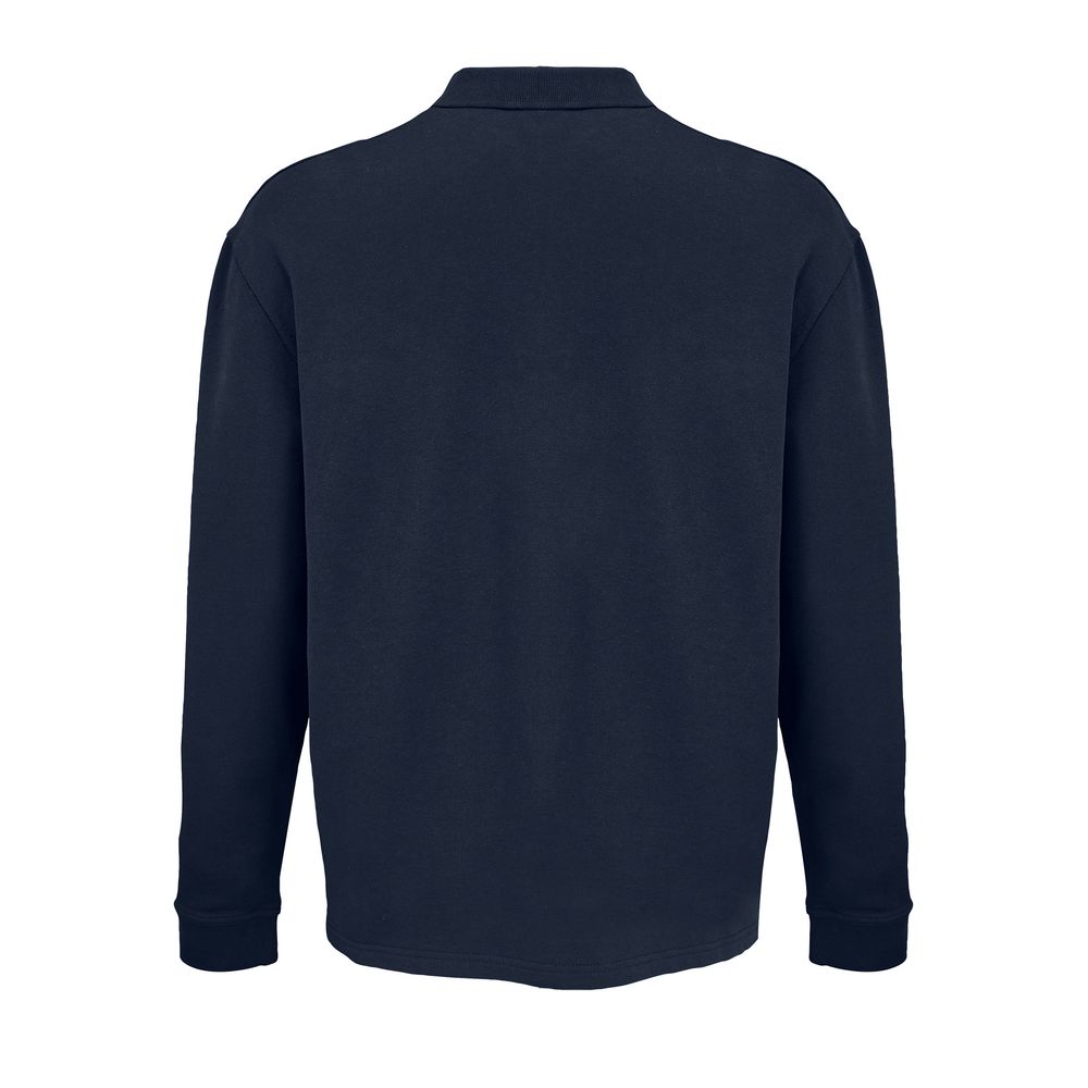 Рубашка поло из футера с длинным рукавом и спущенным плечом.