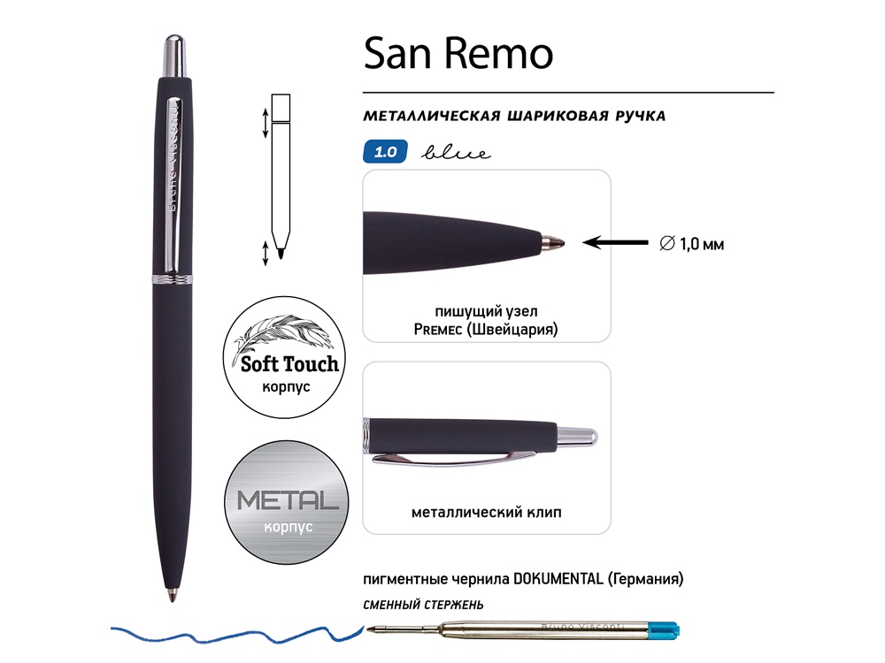 Ручка металлическая шариковая «San Remo», софт тач