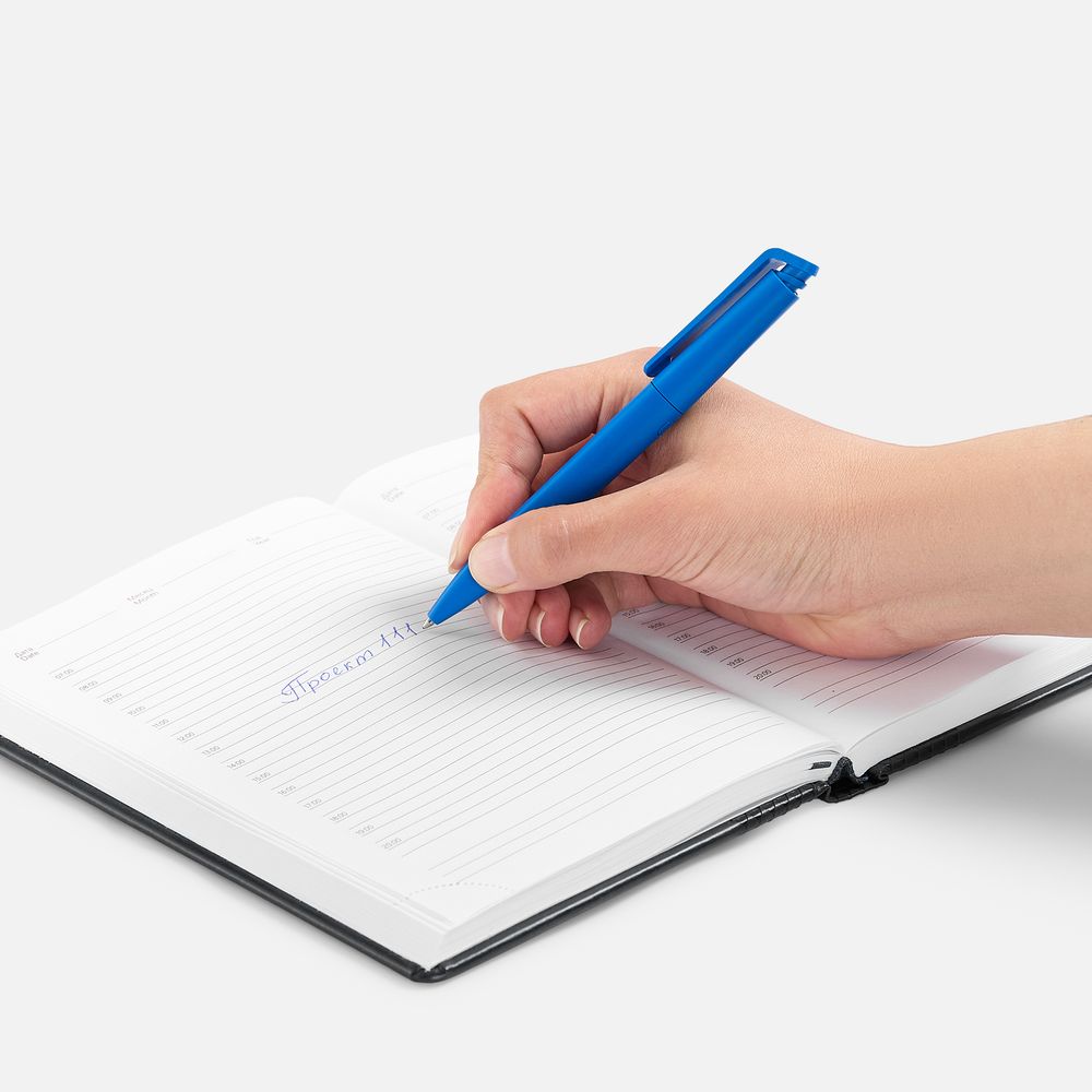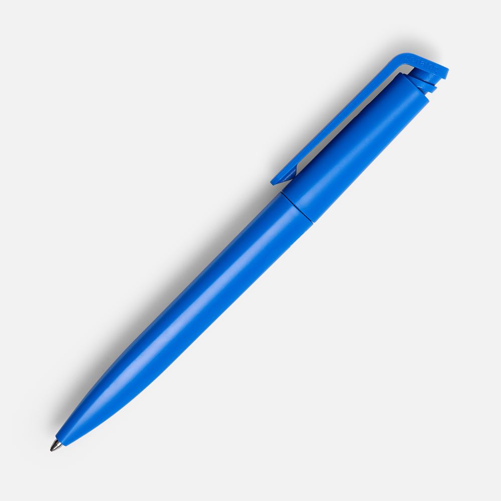 Шариковая ручка с эргономичным треугольным корпусом из матового пластика.