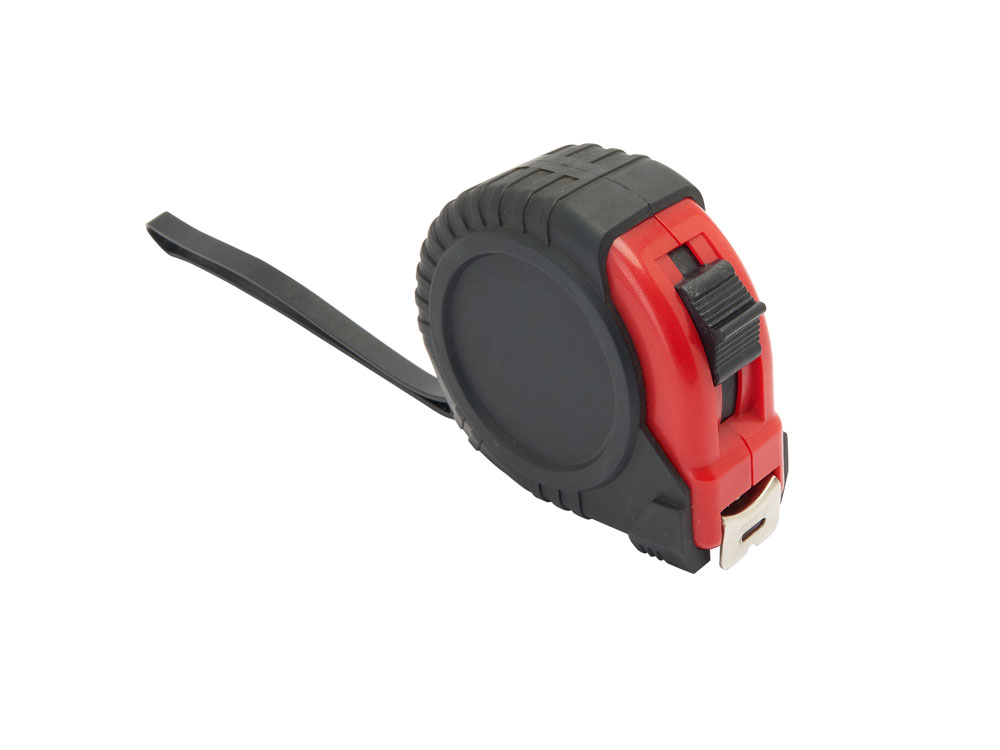 3-метровая рулетка с фиксирующим механизмом. Цветной прорезиненный, металлический зажим и ремешок для переноски.