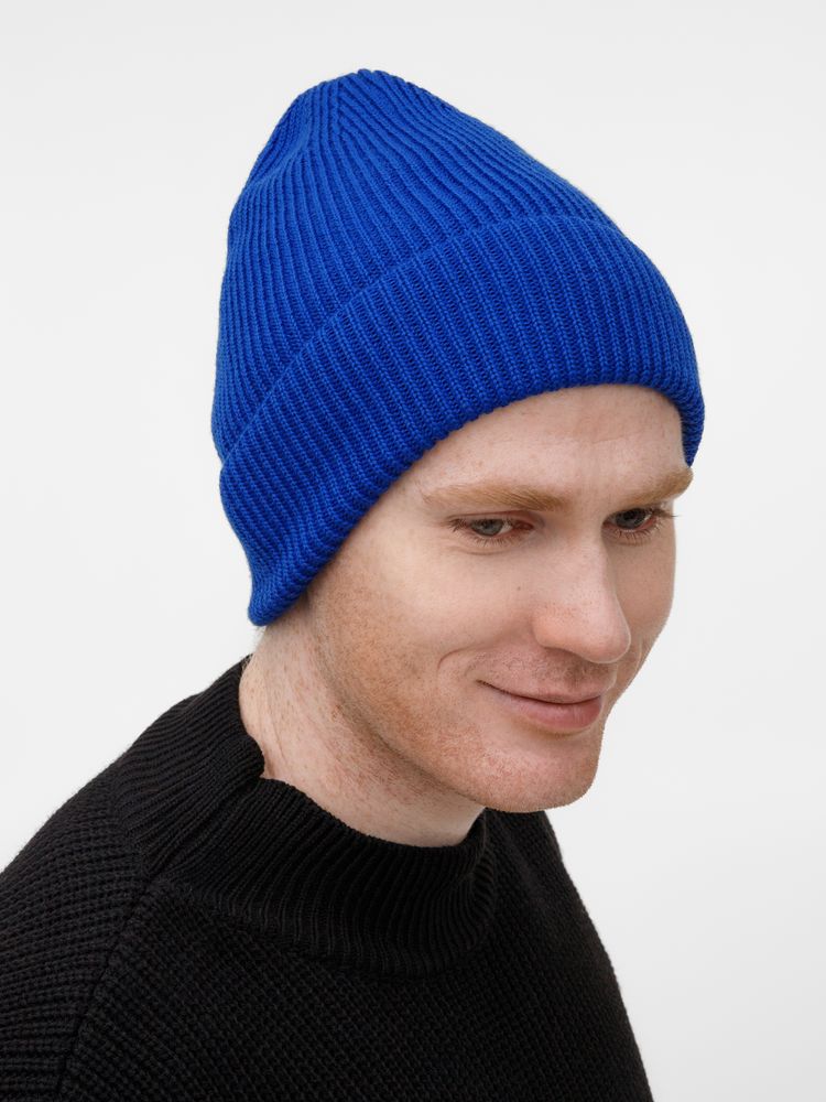 Удлиненный силуэт шапки Nobilis Mono из мягкой полушерстяной пряжи с широким отворотом создает стильный современный образ, а фактурная вязка добавляет объем и выразительность.