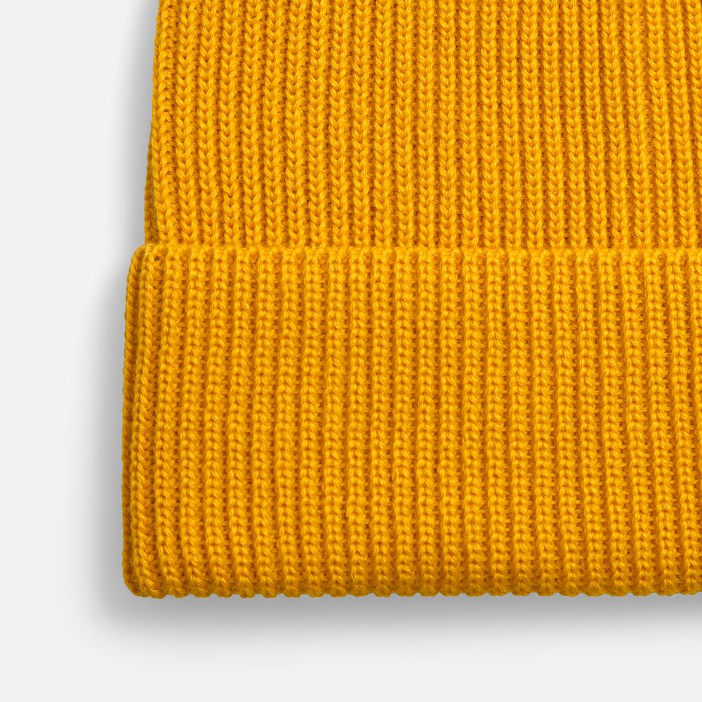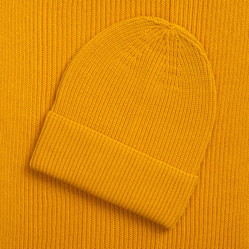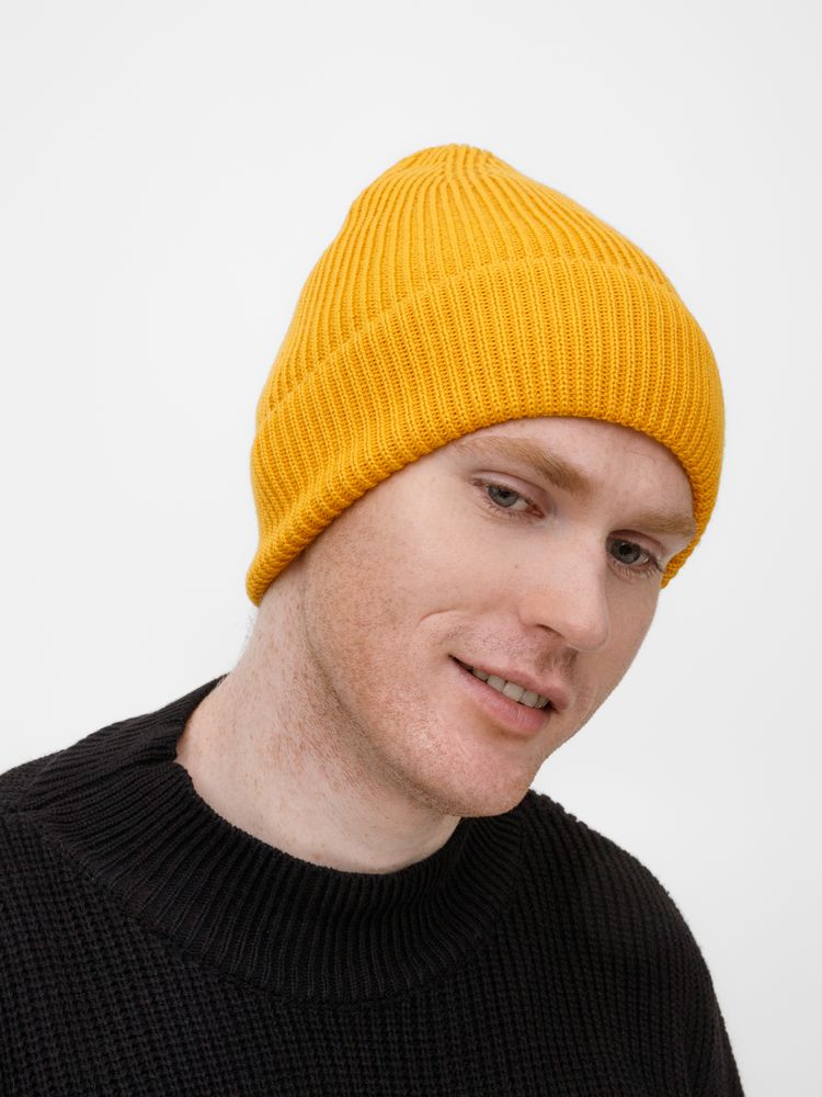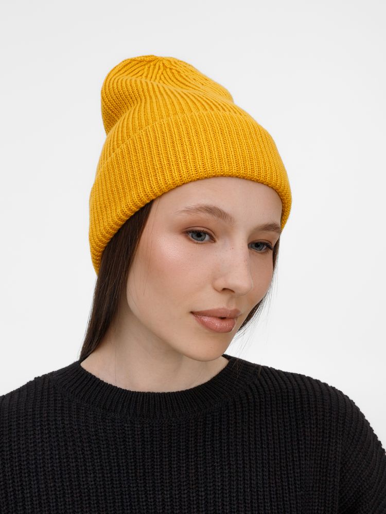 Однослойная шапка фактурной вязки с отворотом.