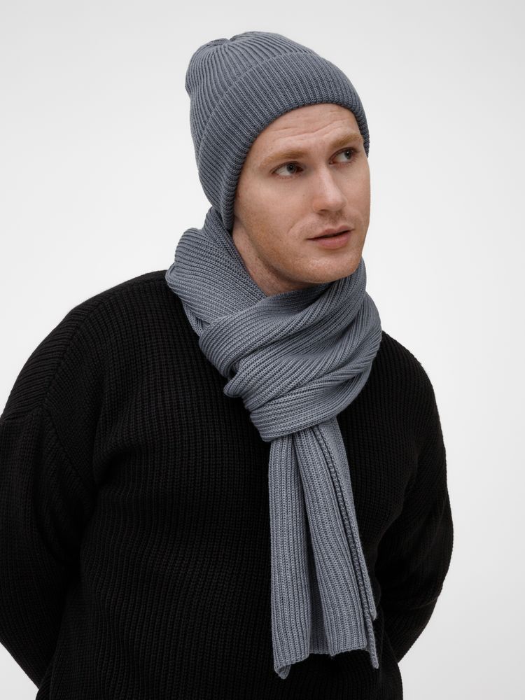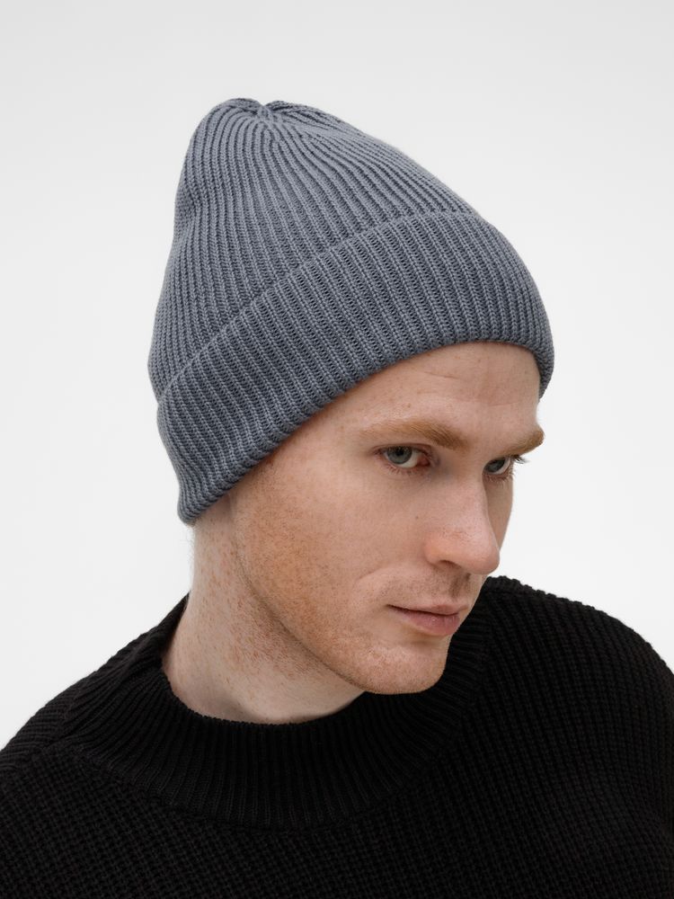 Удлиненный силуэт шапки Nobilis Mono из мягкой полушерстяной пряжи с широким отворотом создает стильный современный образ, а фактурная вязка добавляет объем и выразительность.