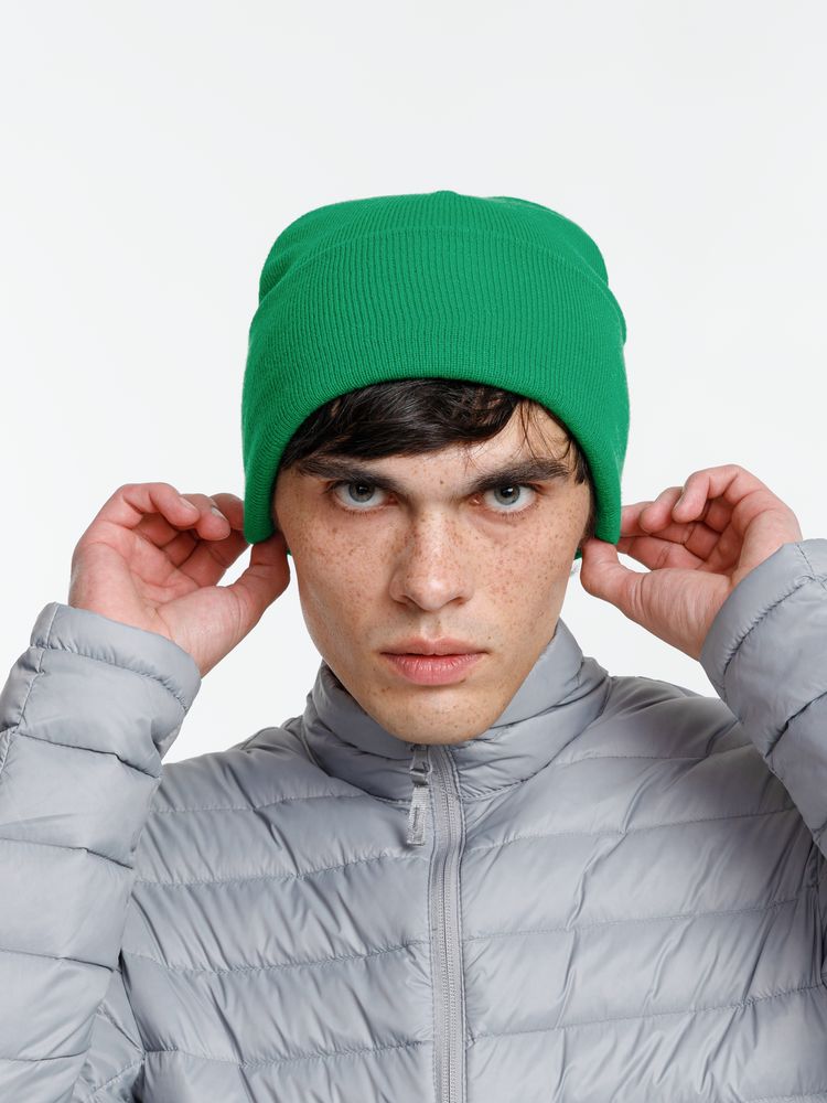 Двухслойная шапка из акриловой пряжи с регулируемым отворотом 7–10 см.