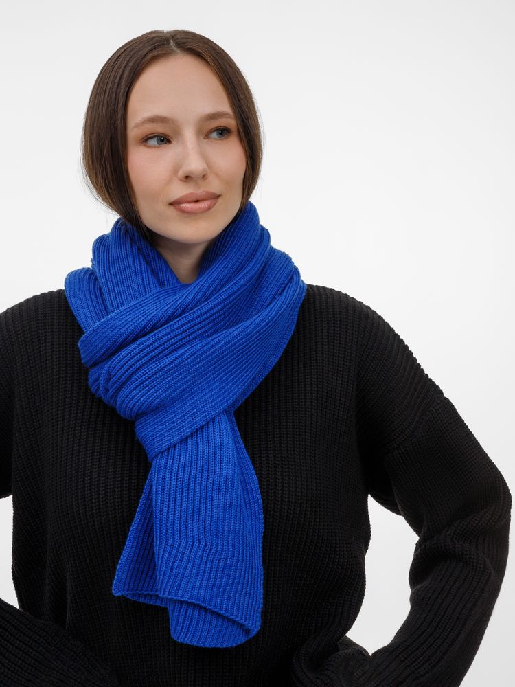 Широкий шарф из мягкой полушерстяной пряжи с выразительной фактурной вязкой создает современный запоминающийся образ.