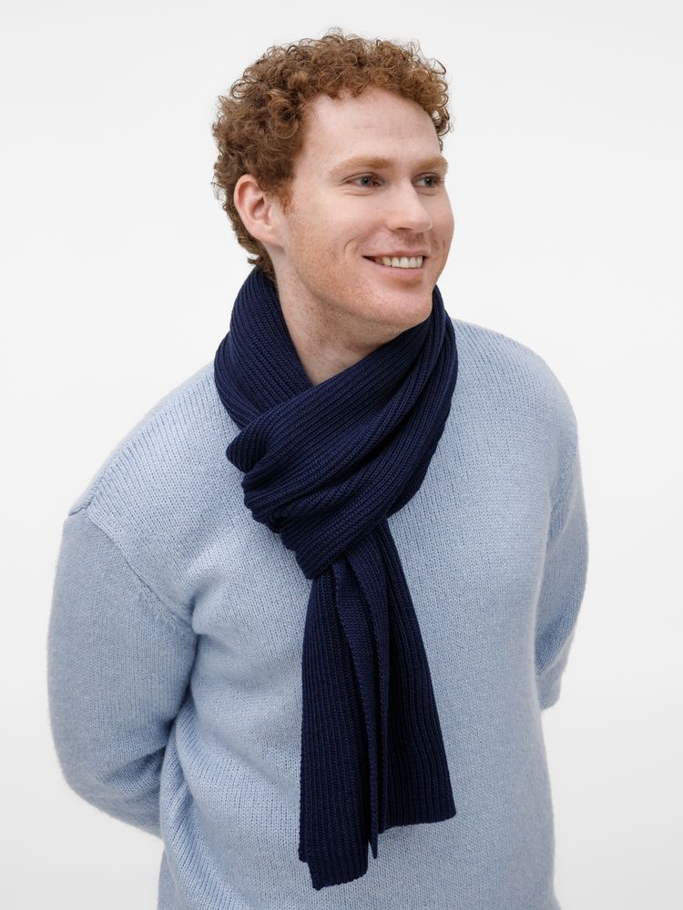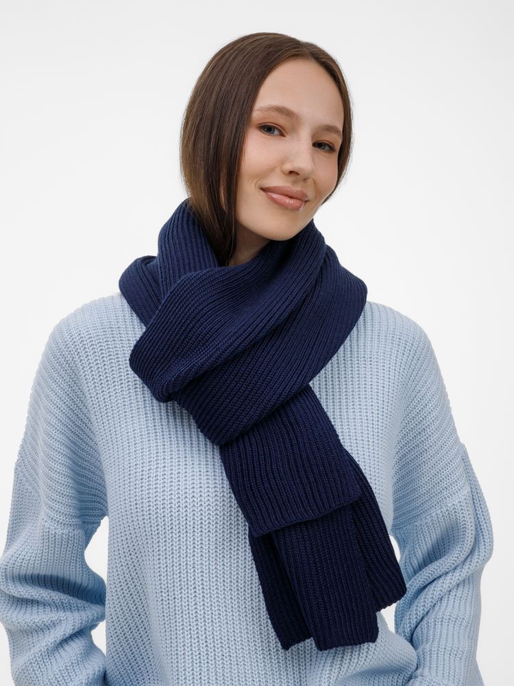 Широкий шарф из мягкой полушерстяной пряжи с выразительной фактурной вязкой создает современный запоминающийся образ.