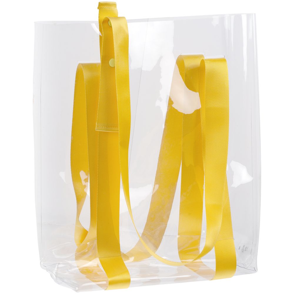 Прозрачные сумки никогда не выйдут из моды. А цветные ручки легко впишутся в брендбук и точно передадут настроение, которое хотелось бы транслировать.