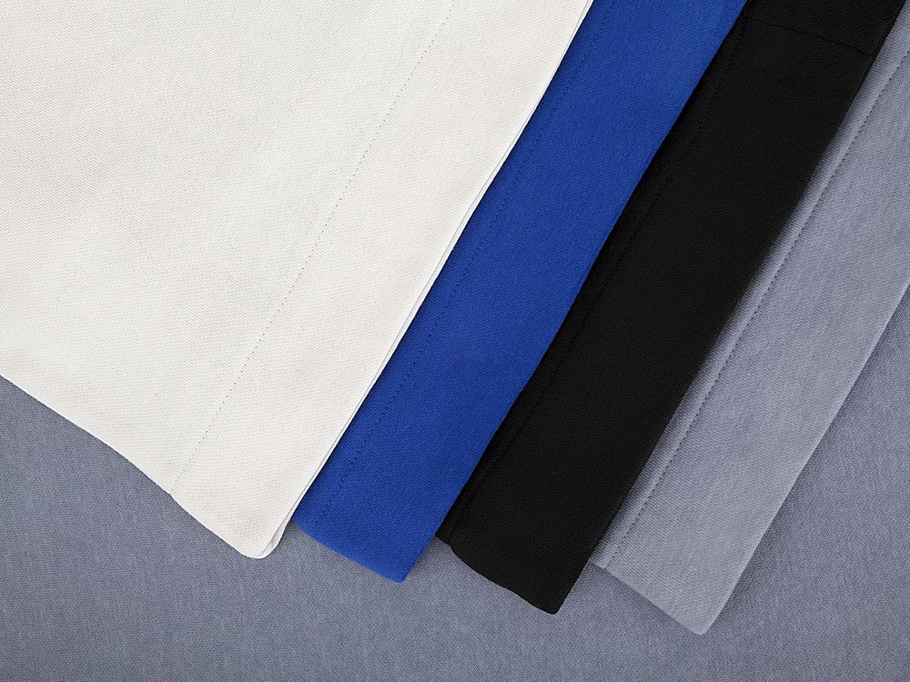 Базовая повседневная одежда актуального покроя в стиле унисекс разработана в рамках единой коллекции и легко собирается в комплекты. Специально спроектированные лекала и технологии пошива открывают простор для любых вариантов кастомизации и нанесения изображений. На видимой части изделий нет лейблов с айдентикой бренда, а название бренда с уходника легко удалить.