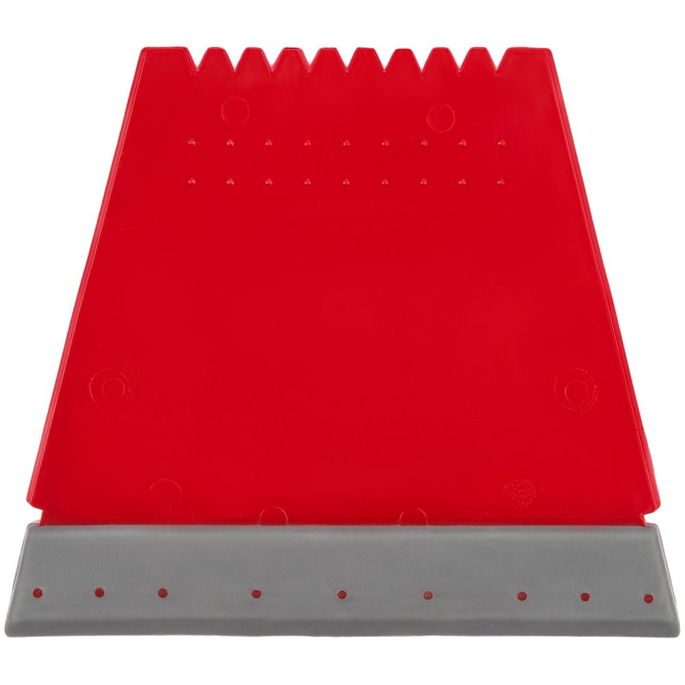 Все 4 стороны скребка рабочие: резиновый водосгон с широкой стороны, зубья-ледорубы с узкой и две скошенные грани по бокам.