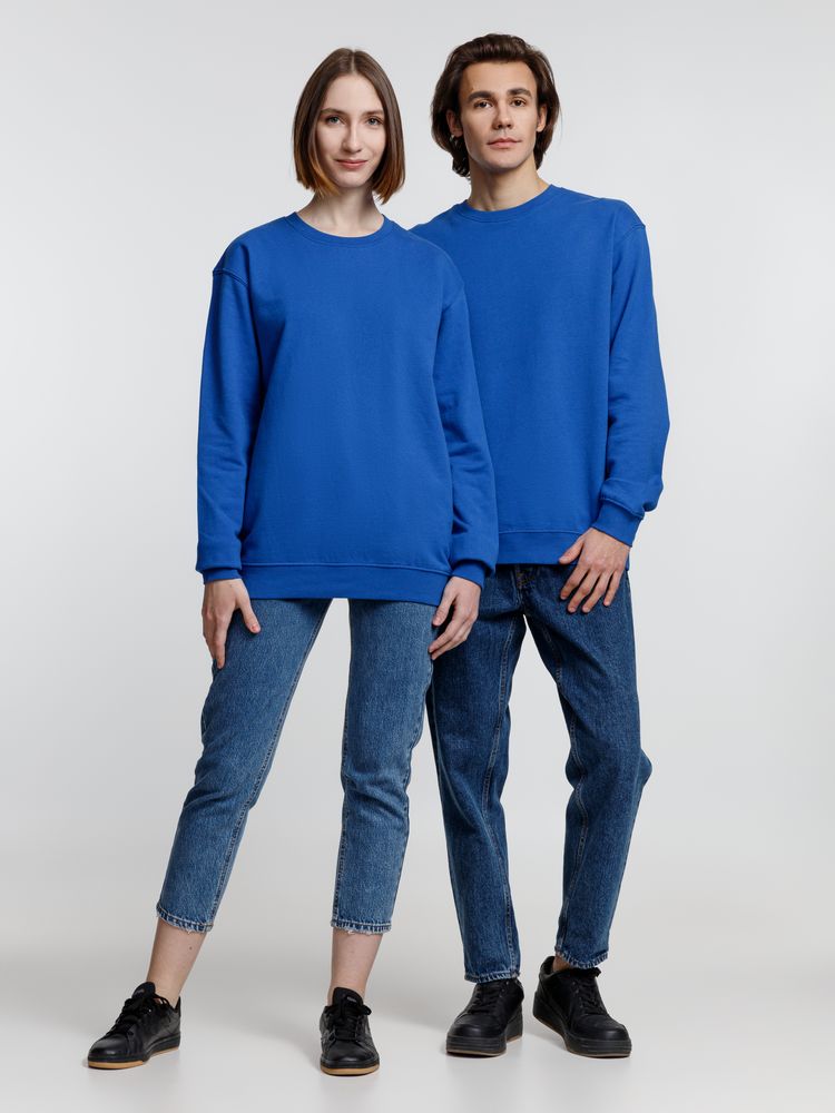 Свитшот унисекс из хлопка и переработанного полиэстера с круглым вырезом и втачным рукавом.