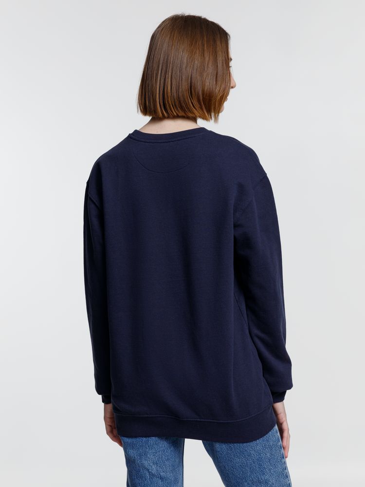 Свитшот унисекс из хлопка и переработанного полиэстера с круглым вырезом и втачным рукавом.