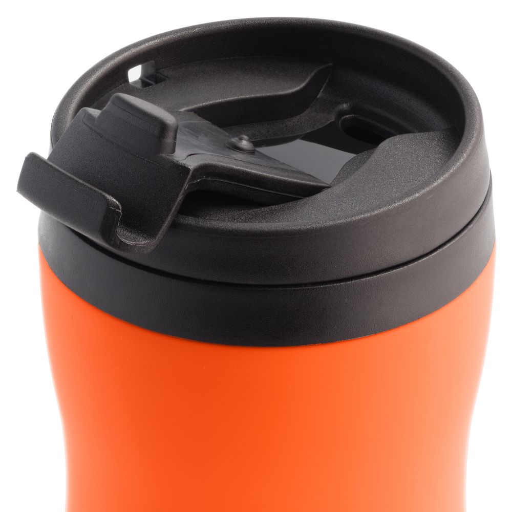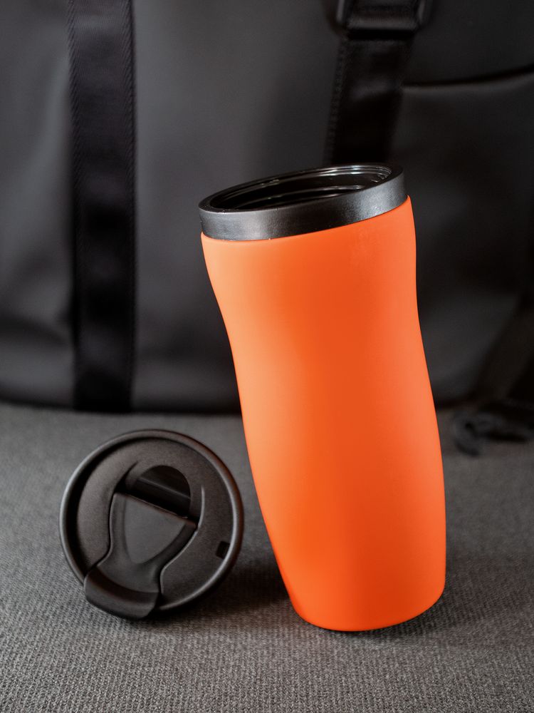 Двухслойная конструкция из нержавеющей стали снаружи и пищевого пластика внутри. Герметичная завинчивающаяся крышка с откидным клапаном для питья. Покрытие софт-тач. В отверстие в крышке можно вставить шнурок для удобного ношения стакана на руке. Шнурок в комплект не входит.