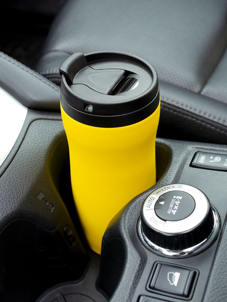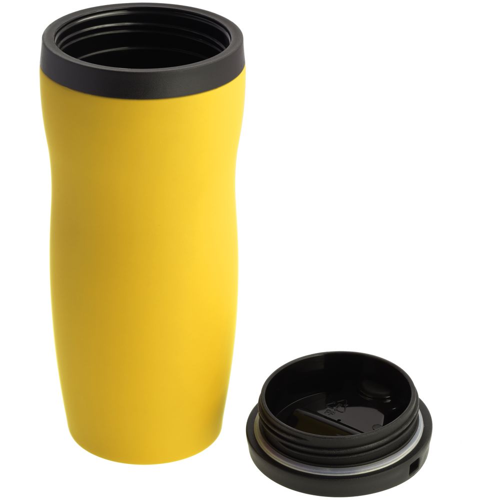 Двухслойная конструкция из нержавеющей стали снаружи и пищевого пластика внутри. Герметичная завинчивающаяся крышка с откидным клапаном для питья. Покрытие софт-тач. В отверстие в крышке можно вставить шнурок для удобного ношения стакана на руке. Шнурок в комплект не входит.