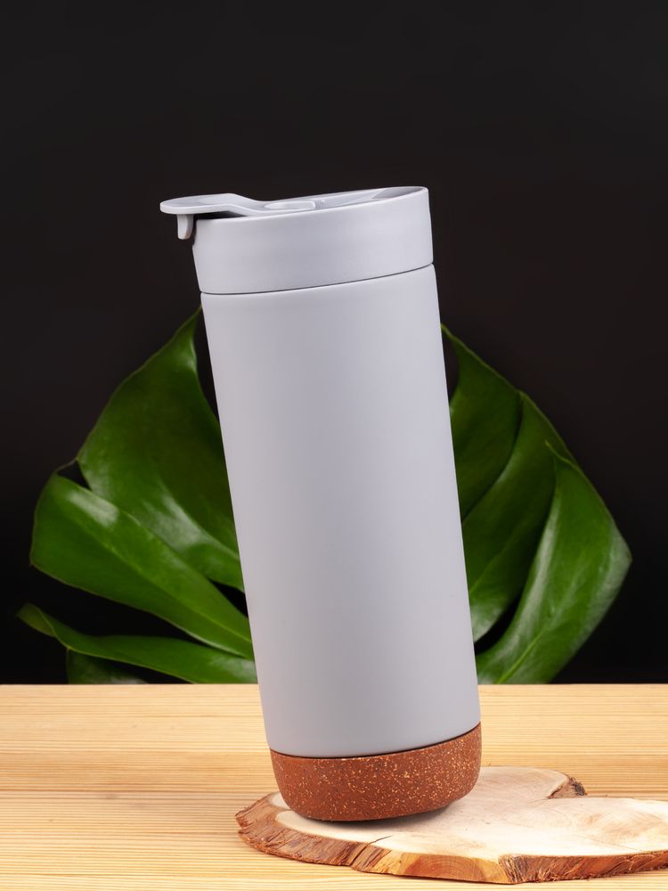 Контраст текстурной пробки на дне и матового покрытия делают термостакан Steady не только практичным, но и стильным подарком.