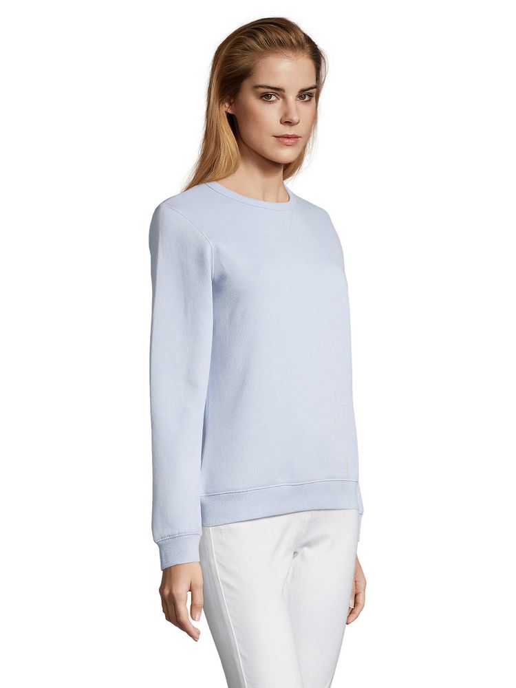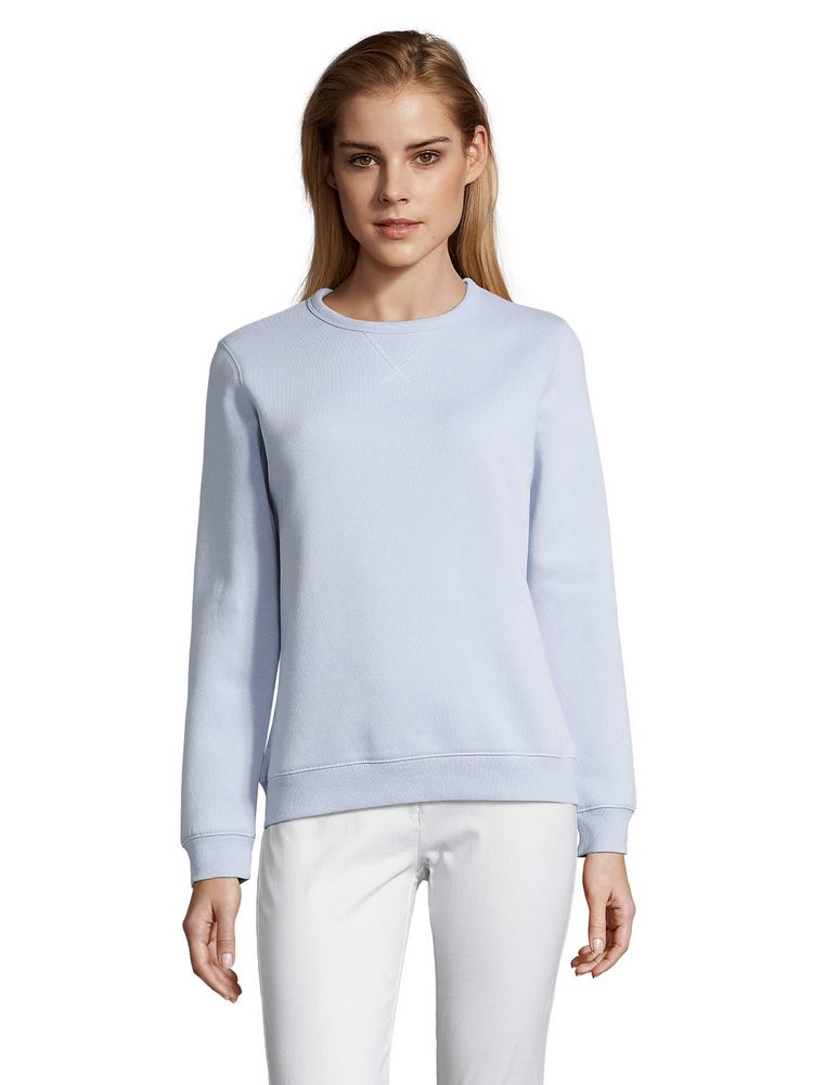 Женская утепленная толстовка с круглым вырезом и декоративной треугольной вставкой. Лейбл производителя в боковом шве изнутри, в шве горловины — только бирка с размером, что позволяет вам нанести свой логотип.