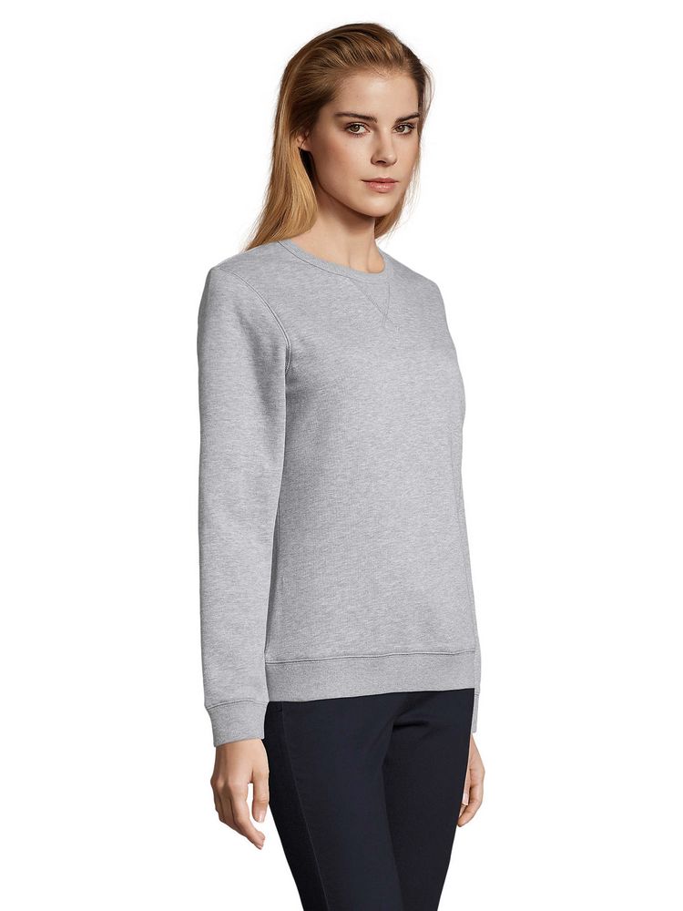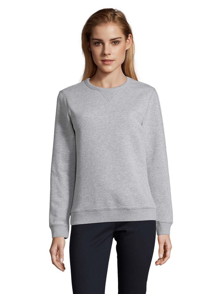 Женская утепленная толстовка с круглым вырезом и декоративной треугольной вставкой. Лейбл производителя в боковом шве изнутри, в шве горловины — только бирка с размером, что позволяет вам нанести свой логотип.