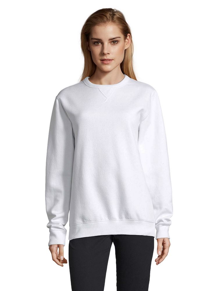 Женская утепленная толстовка с круглым вырезом и декоративной треугольной вставкой. Лейбл производителя в боковом шве изнутри, в шве горловины — только бирка с размером, что позволяет вам нанести свой логотип.
