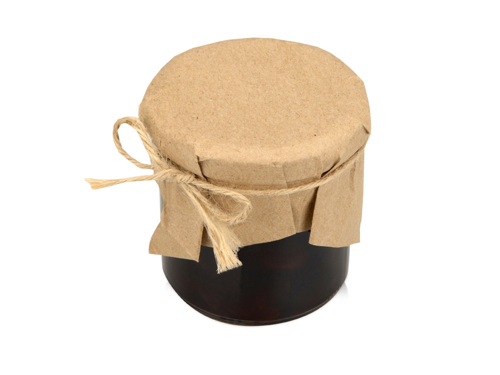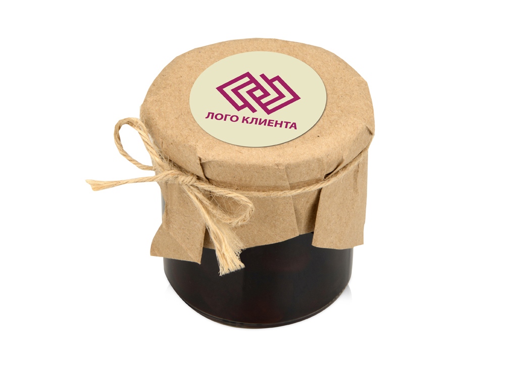 Банка варенья обернута крафт-бумагой, на которую возможно сделать нанесение корпоративного логотипа.