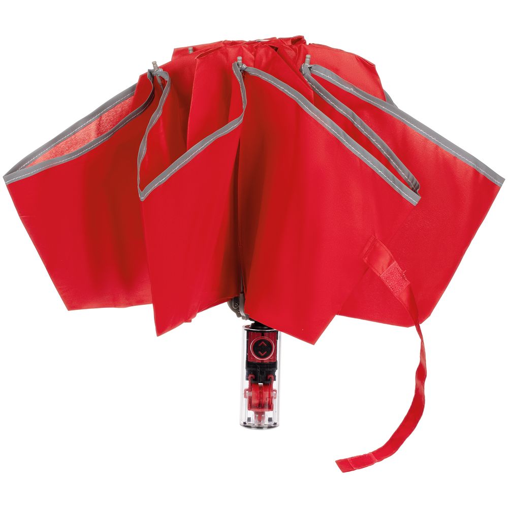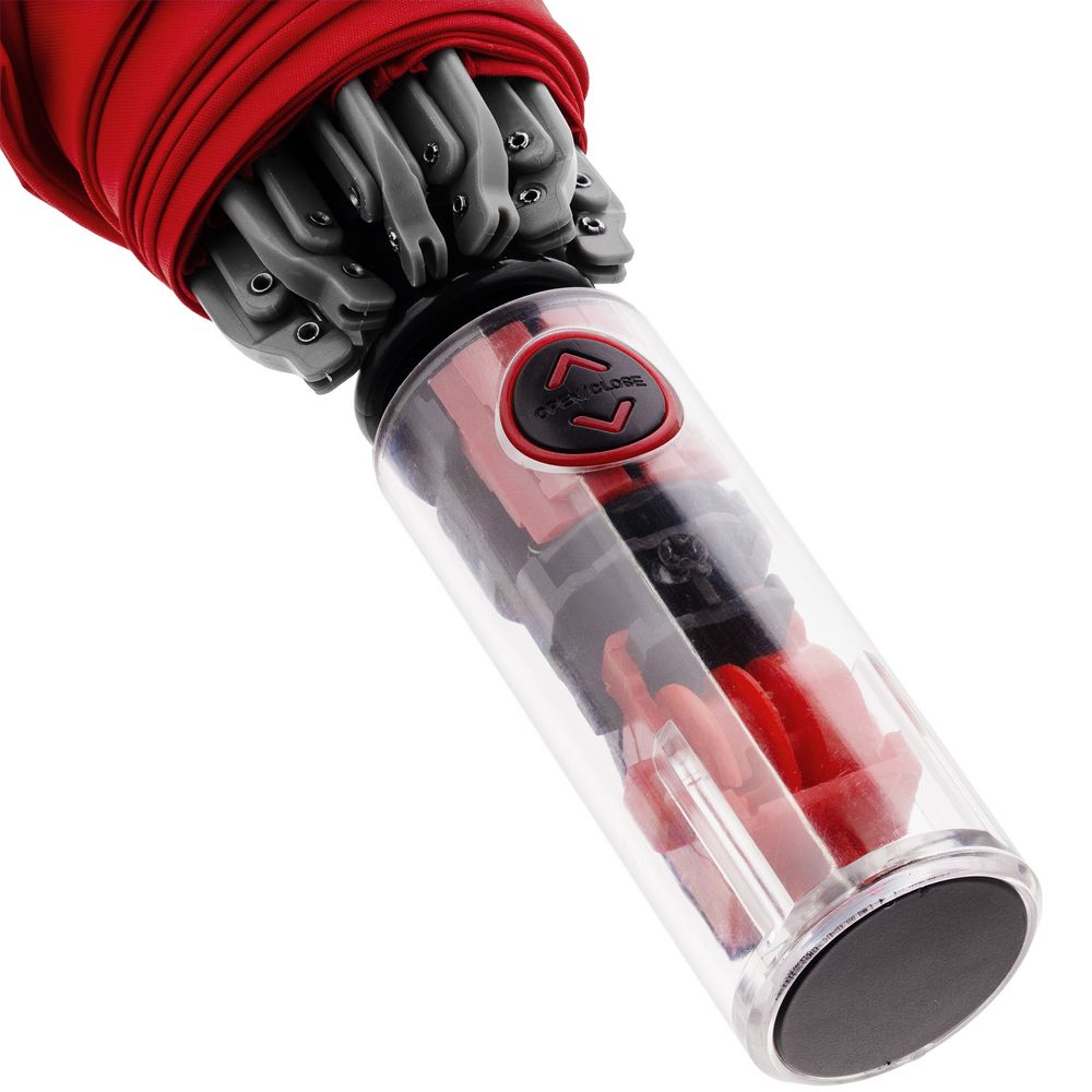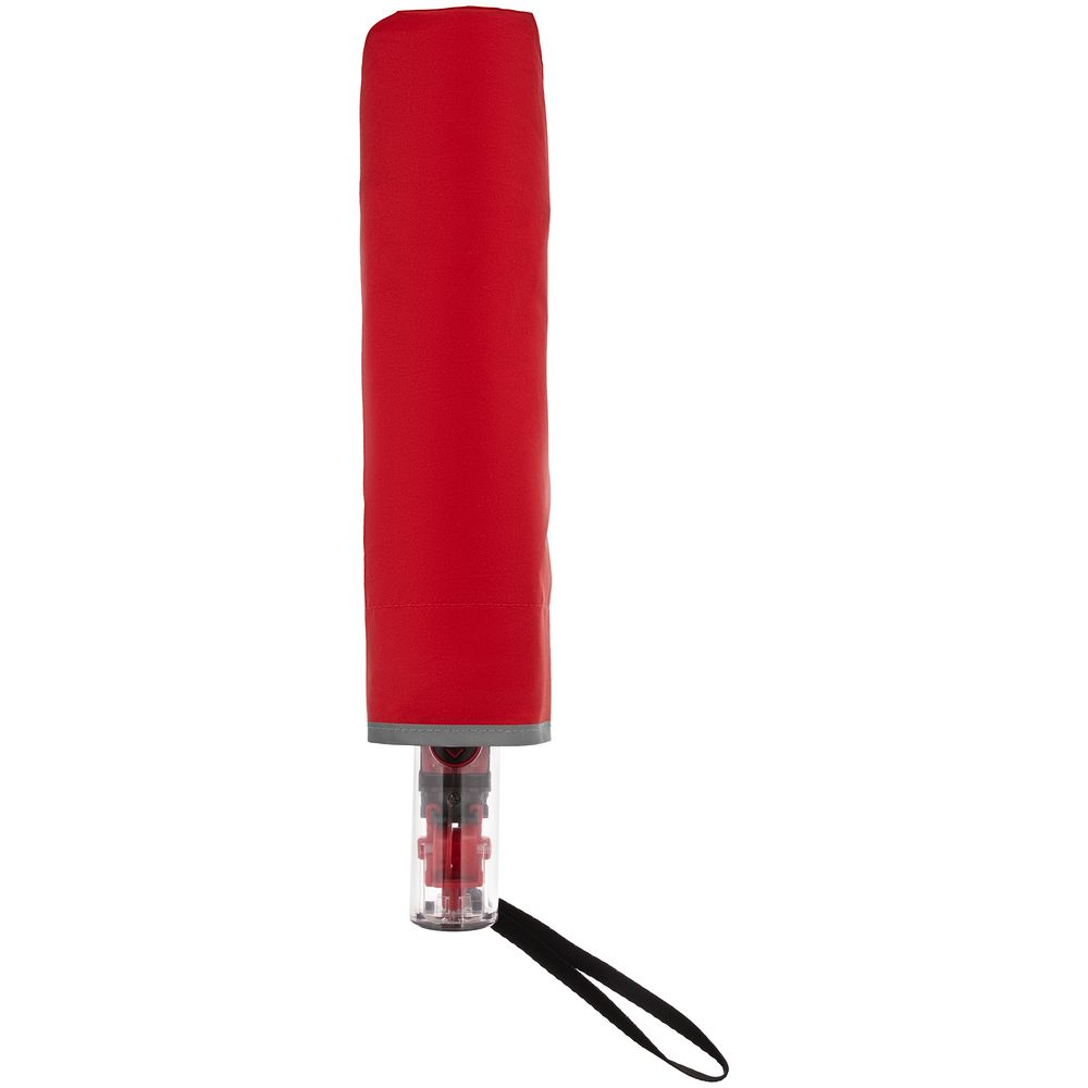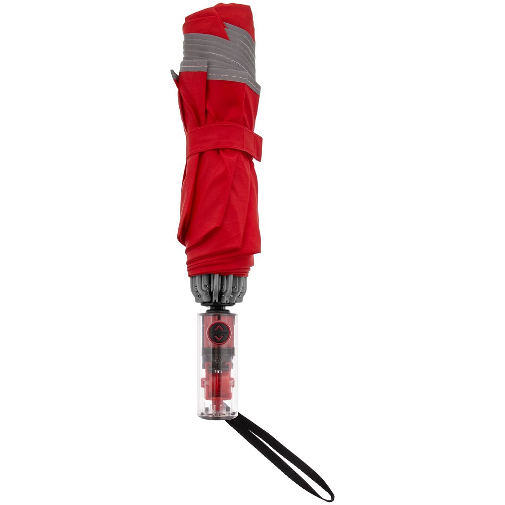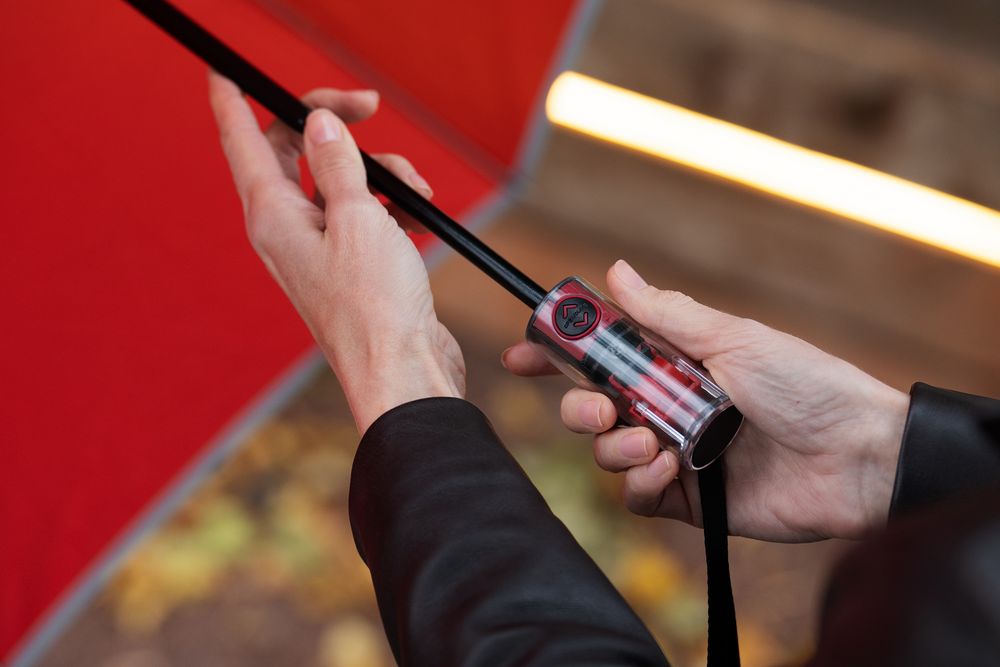 Складной зонт Futurum привлекает внимание оригинальным дизайном. Складываясь после дождя, он прячет мокрую поверхность в себя, а сухая остается снаружи. Светоотражающий кант и ручка из прозрачного пластика, не скрывающая ярких деталей внутри, добавляют внешнему виду зонта футуристичности.