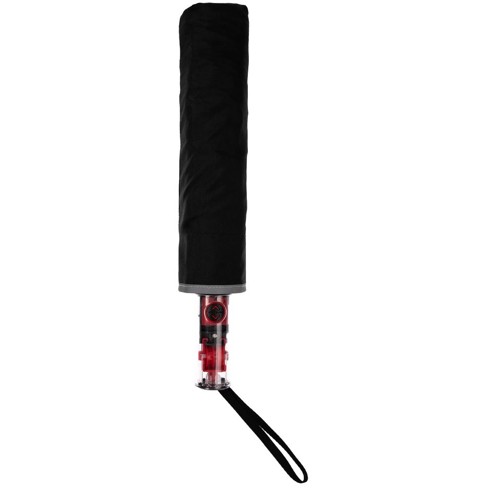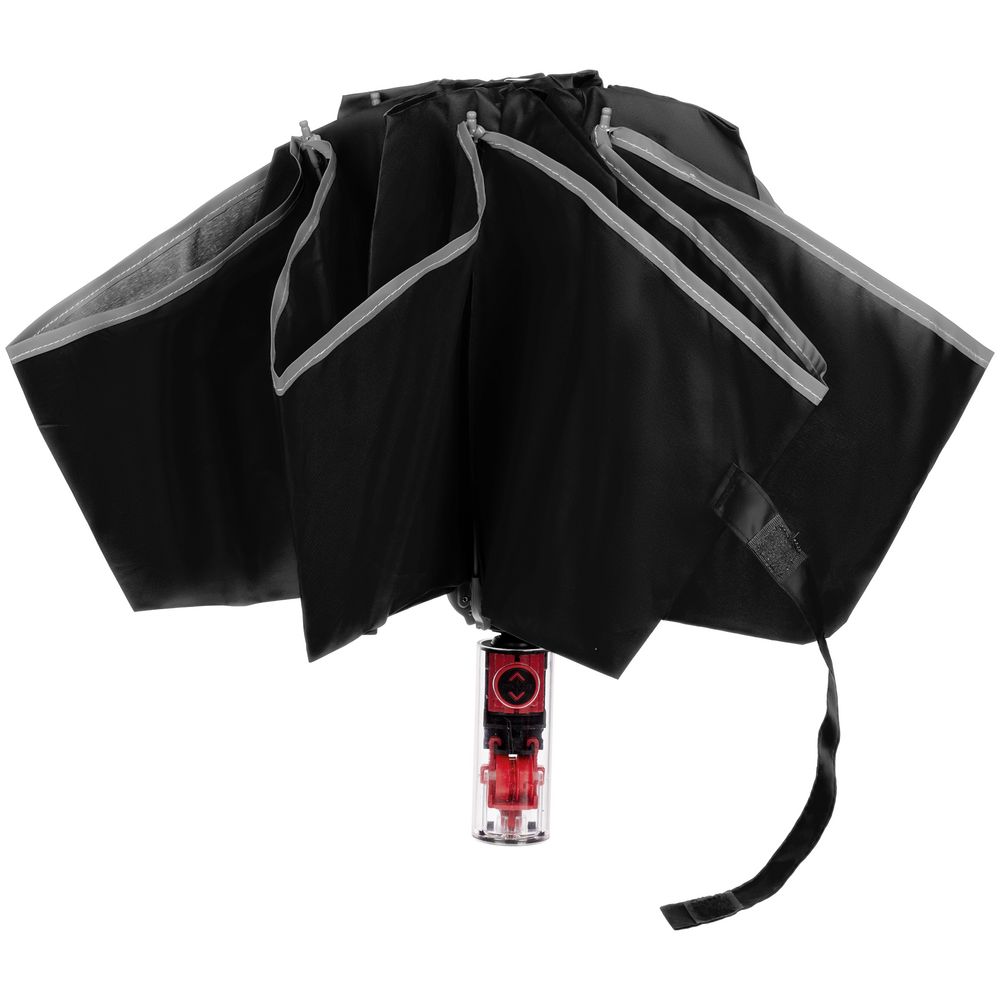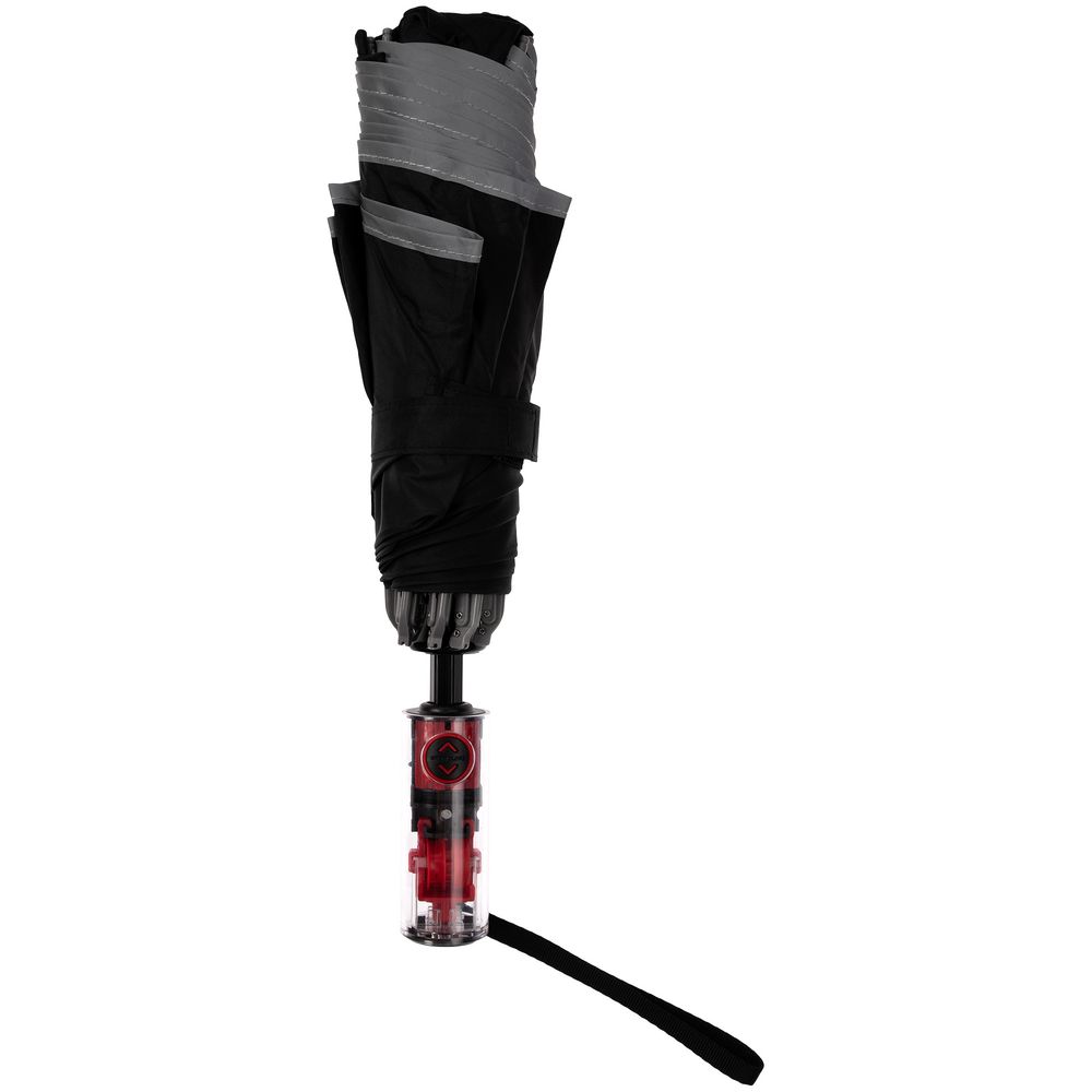 Складной зонт Futurum привлекает внимание оригинальным дизайном. Складываясь после дождя, он прячет мокрую поверхность в себя, а сухая остается снаружи. Светоотражающий кант и ручка из прозрачного пластика, не скрывающая ярких деталей внутри, добавляют внешнему виду зонта футуристичности.