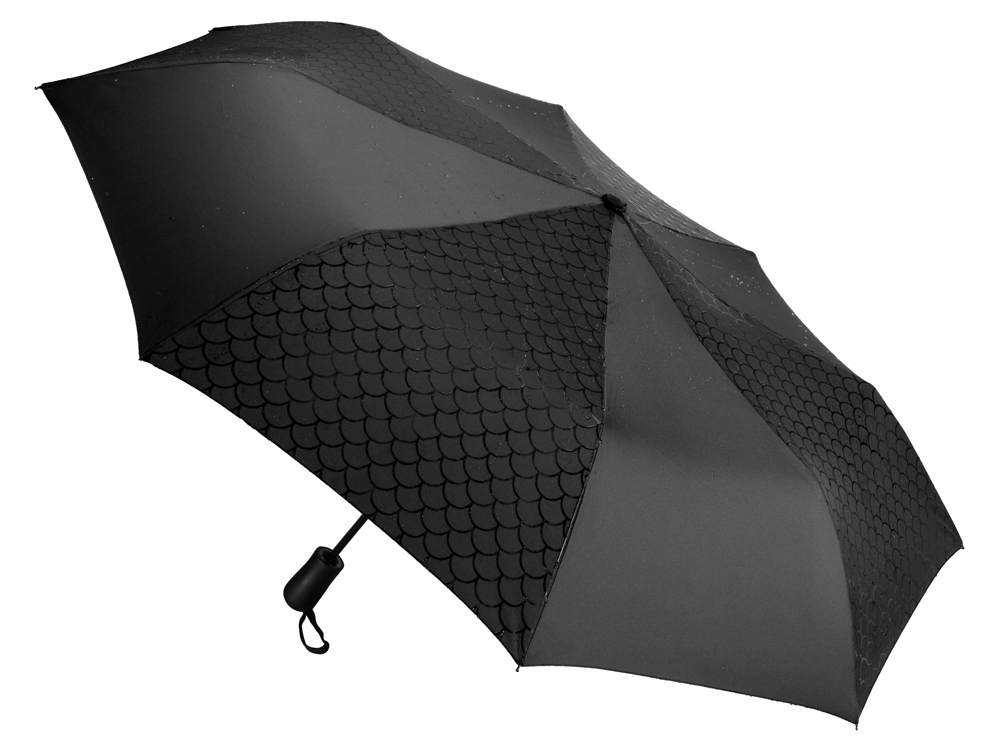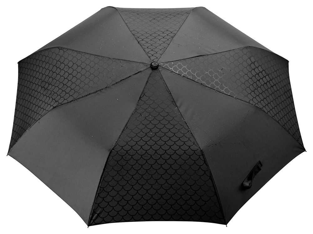 Зонт-полуавтомат с куполом из эпонжа. Рисунок на куполе проявляется, когда зонт намокает под дождем. По мере высыхания купола, рисунок на нем исчезает. Зонт не согнется при сильных порывах ветра и защитит от промокания, так как его каркас снабжен специальной системой противоветровой защиты. Ручка с мягким покрытием soft-touch для большего комфорта.