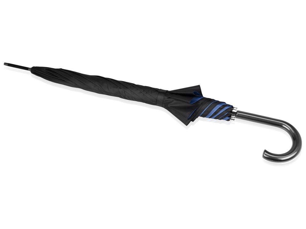 Интересный двухцветный зонт-трость спасет вас от дождя и легкого снега. Внешняя поверхность купола окрашена в черный цвет, а внутренняя имеет яркий, насыщенный оттенок, что непременно привлечет внимание. На купол зонта можно нанести логотип.