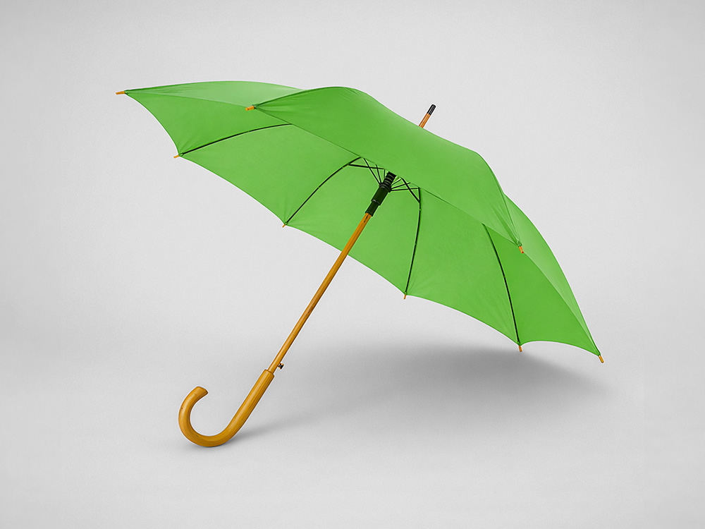 Полуавтоматический зонт-трость с деревянной ручкой выполнен из качественных материалов и устойчив к сильным порывам ветра. Яркие, сочные цвета в ассортименте.