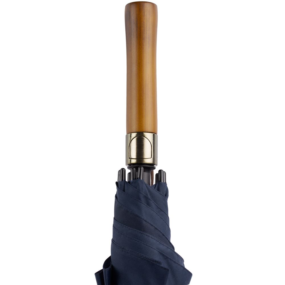 • Прямая деревянная ручка с петлей из натуральной кожи и кнопкой открытия зонта