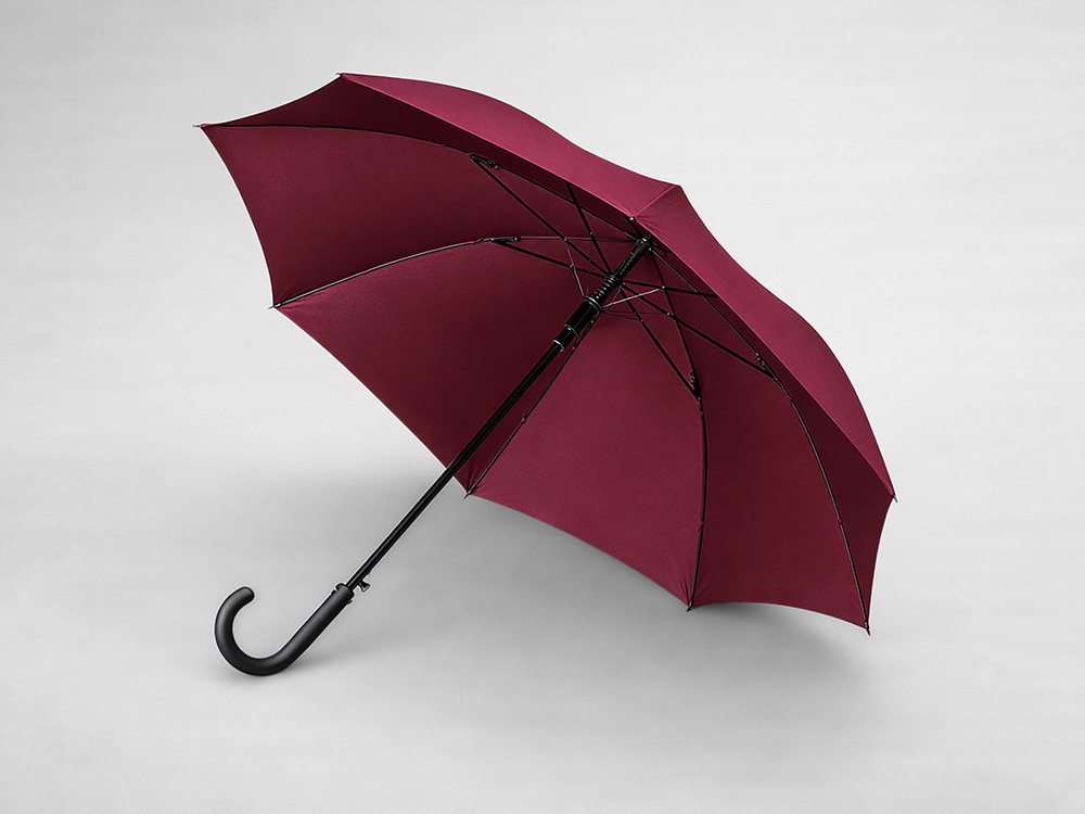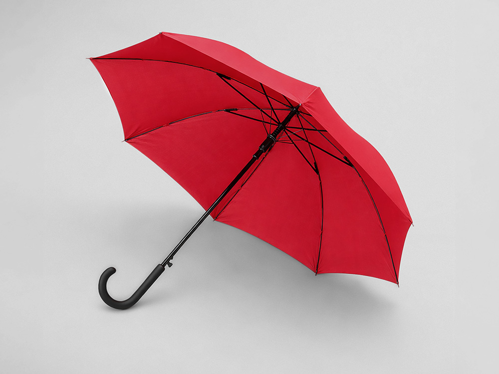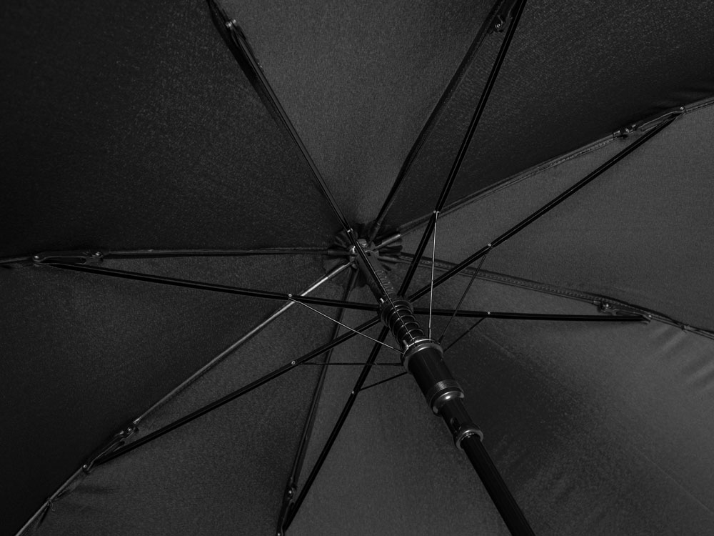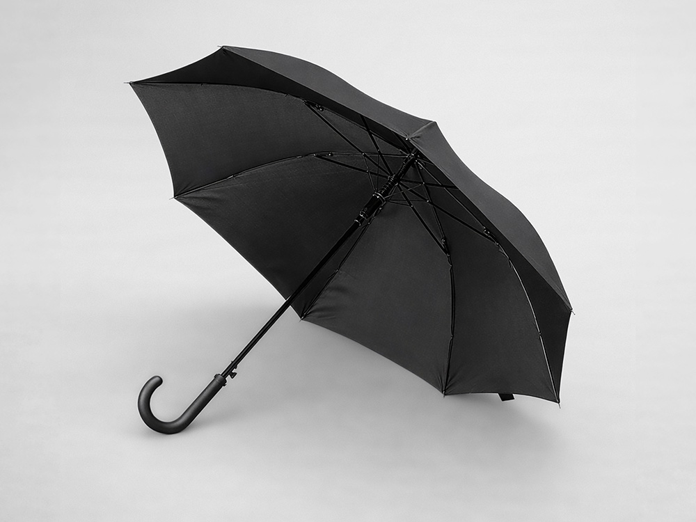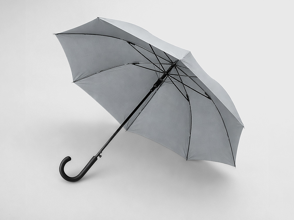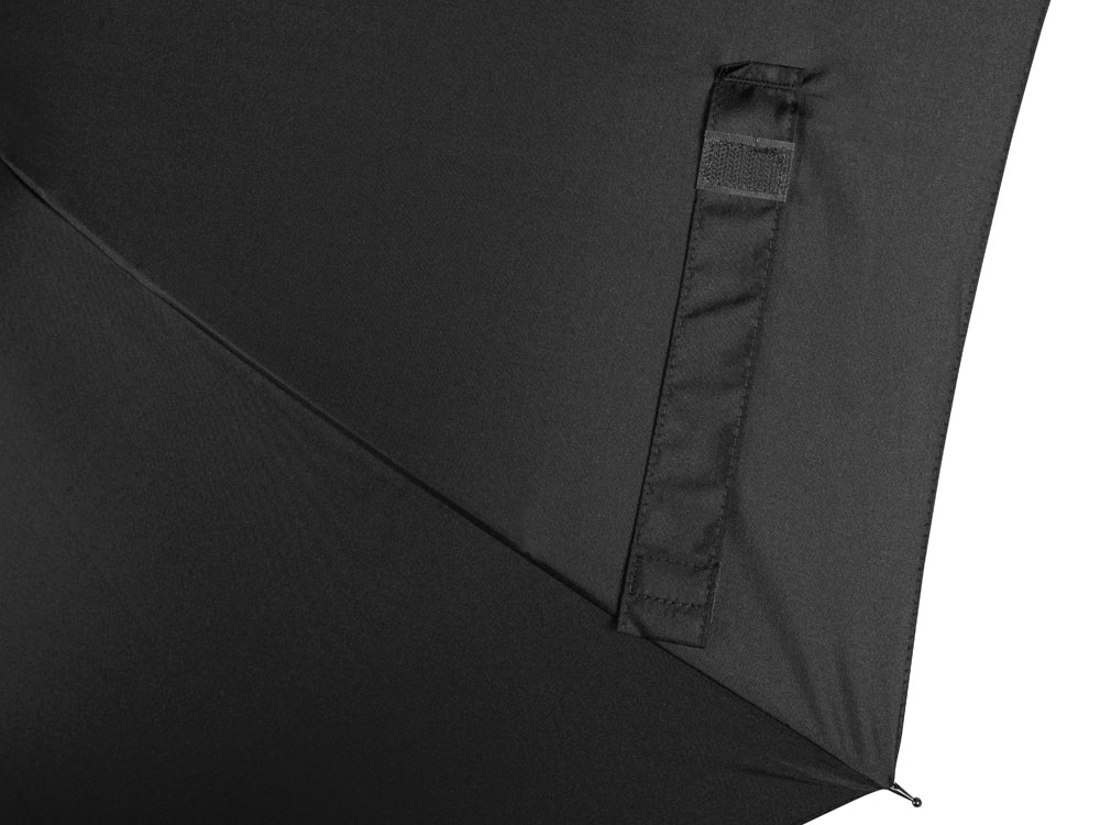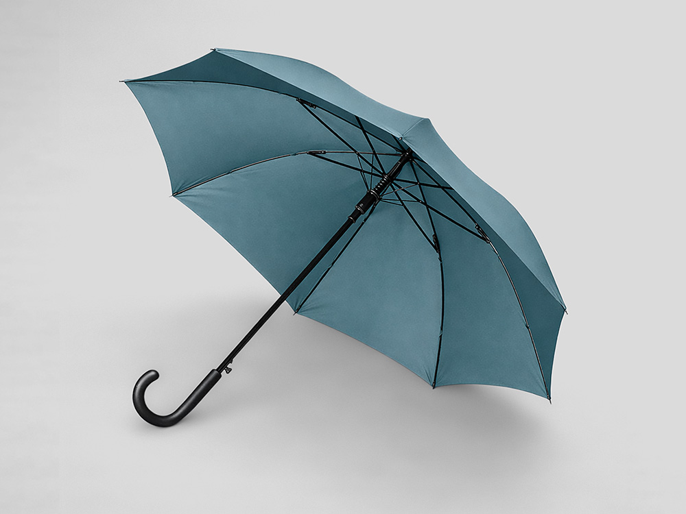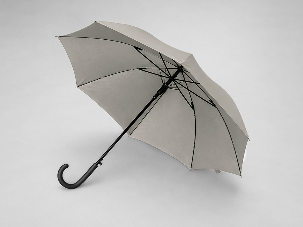 Купол зонта-трости выполнен из переработанного пластика. На ручке зонта расположена кнопка автоматического открытия. Гибкие спицы из стекловолокна делают зонт стойким к порывам ветра. Удобная ручка софт тач. Фиксирующая купол застежка на липучке шириной 3 см — дополнительная опция для нанесения вашего логотипа.